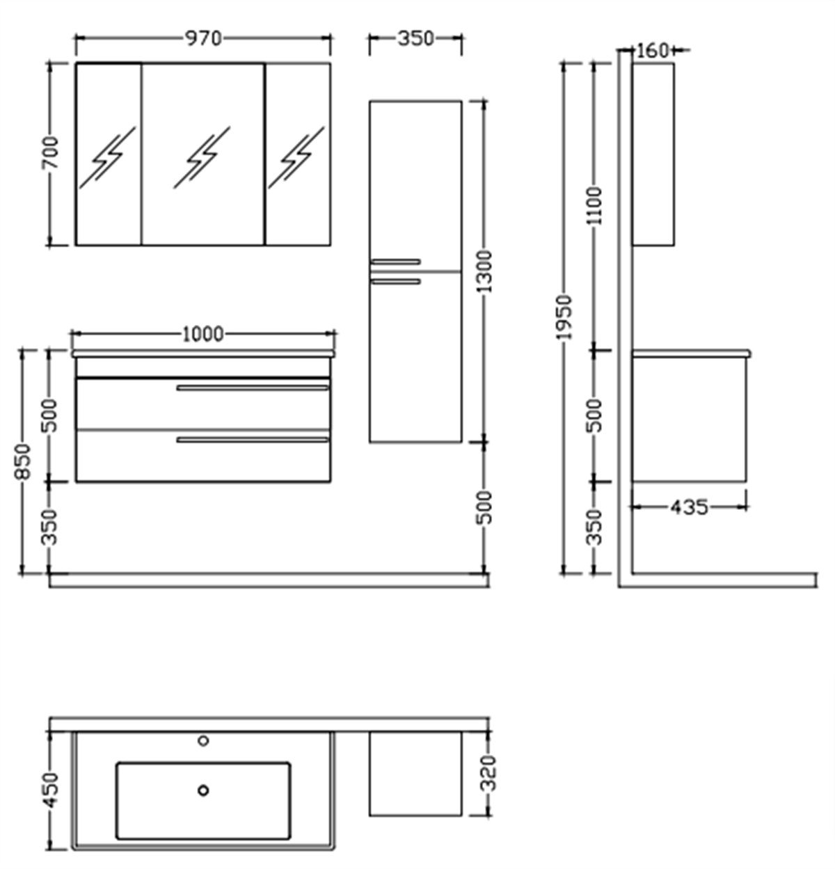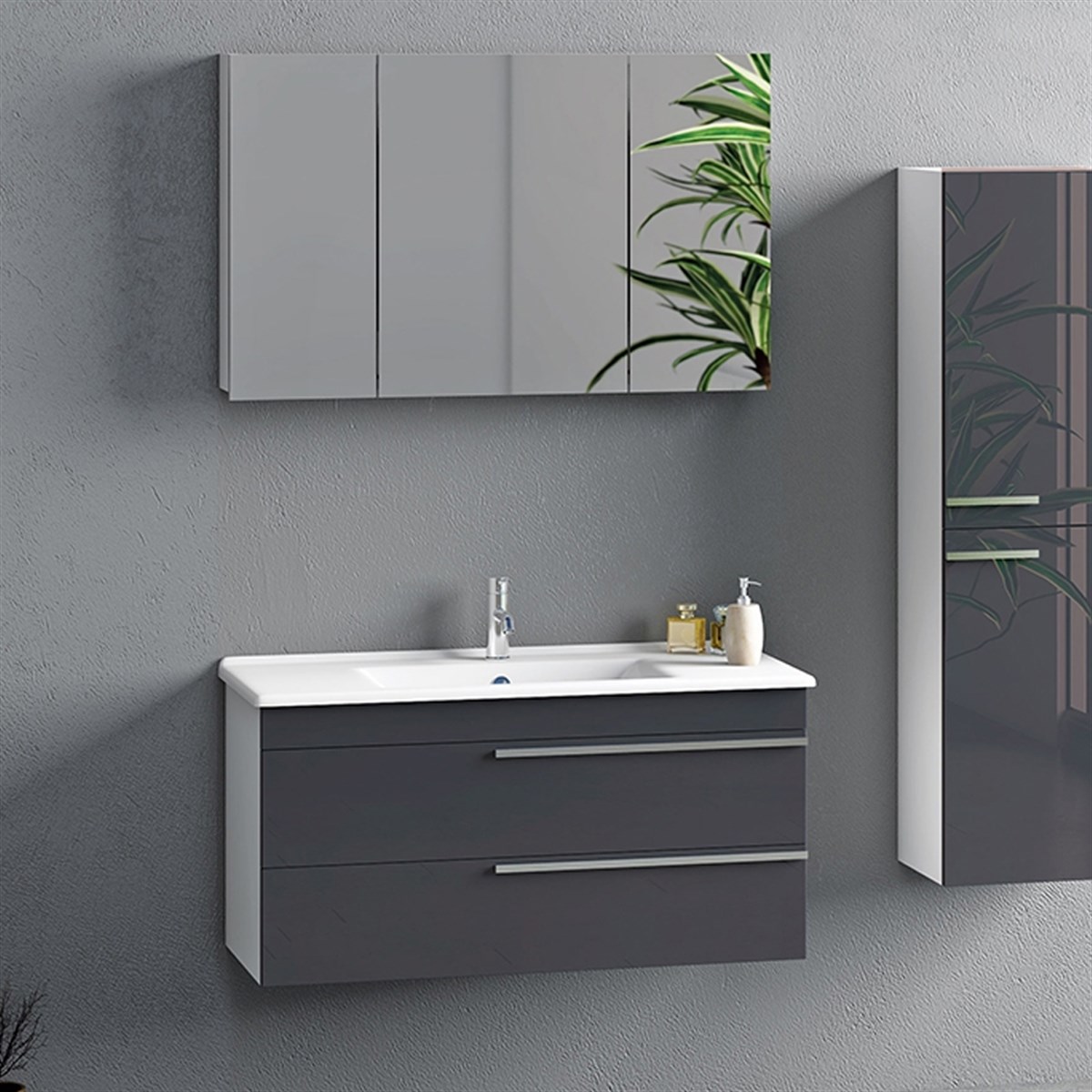 Nplus Dokker 100 cm Banyo Dolabı Beyaz/Metalik Antrasit