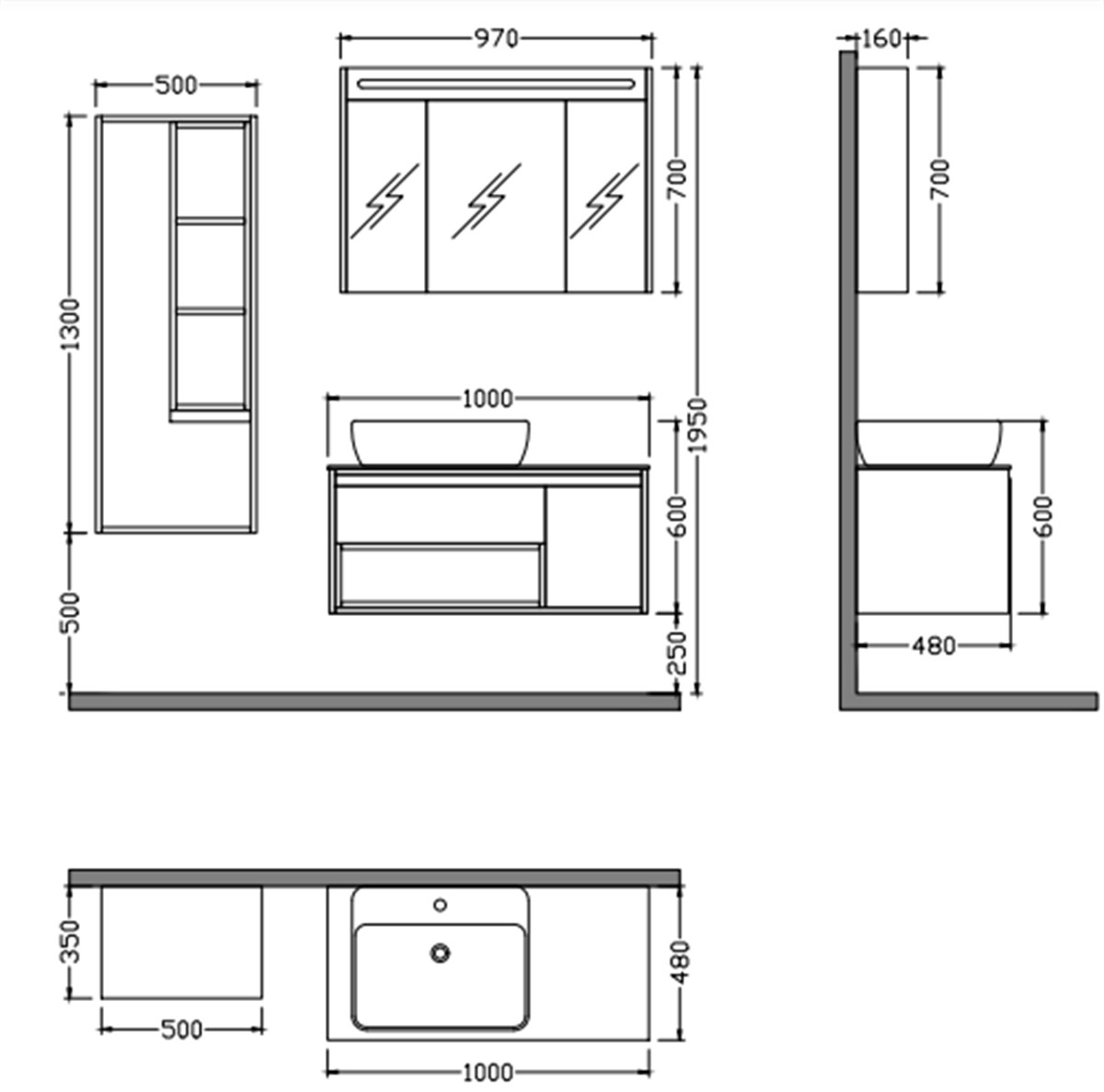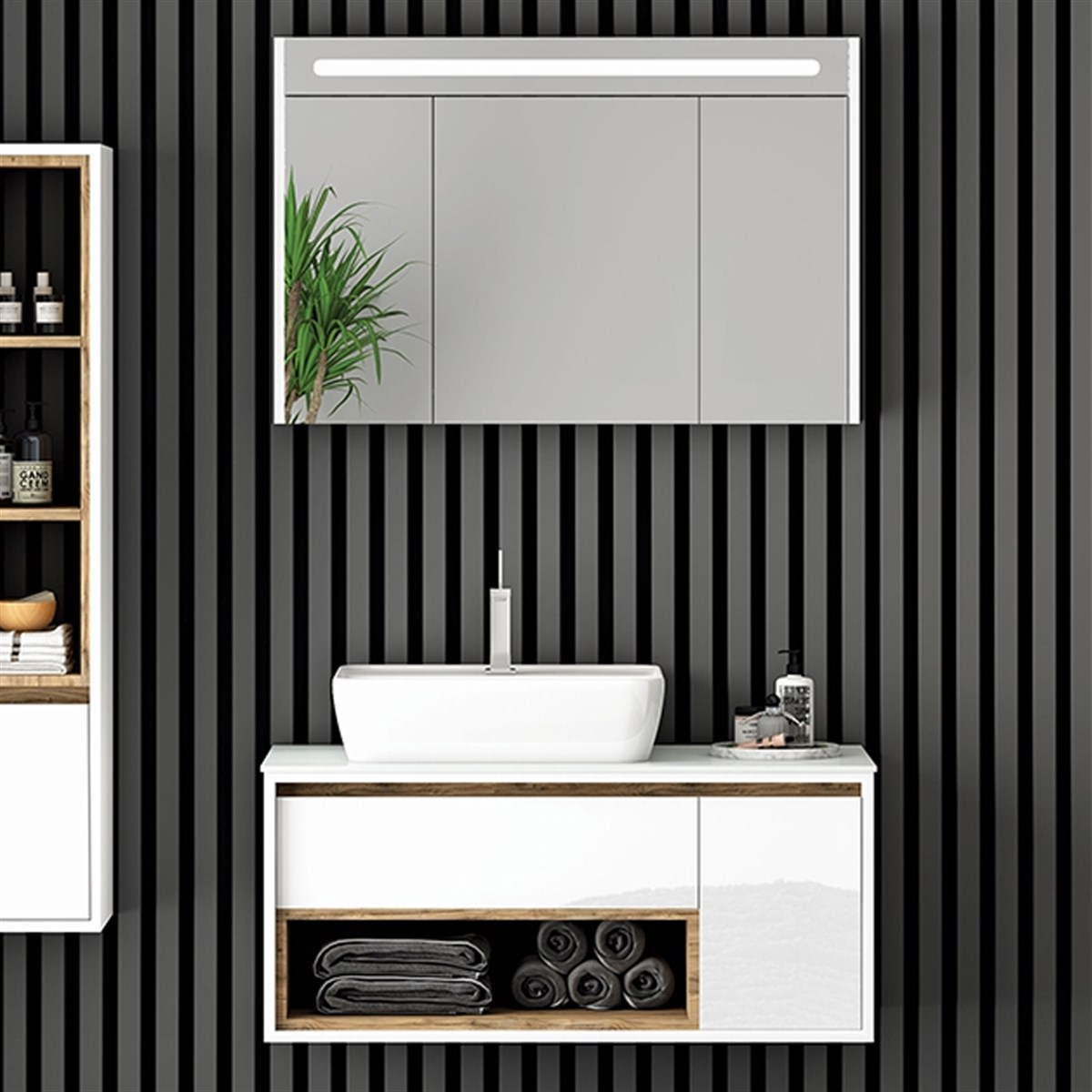 Nplus Galaxy 100 cm Banyo Dolabı Beyaz/Dorado