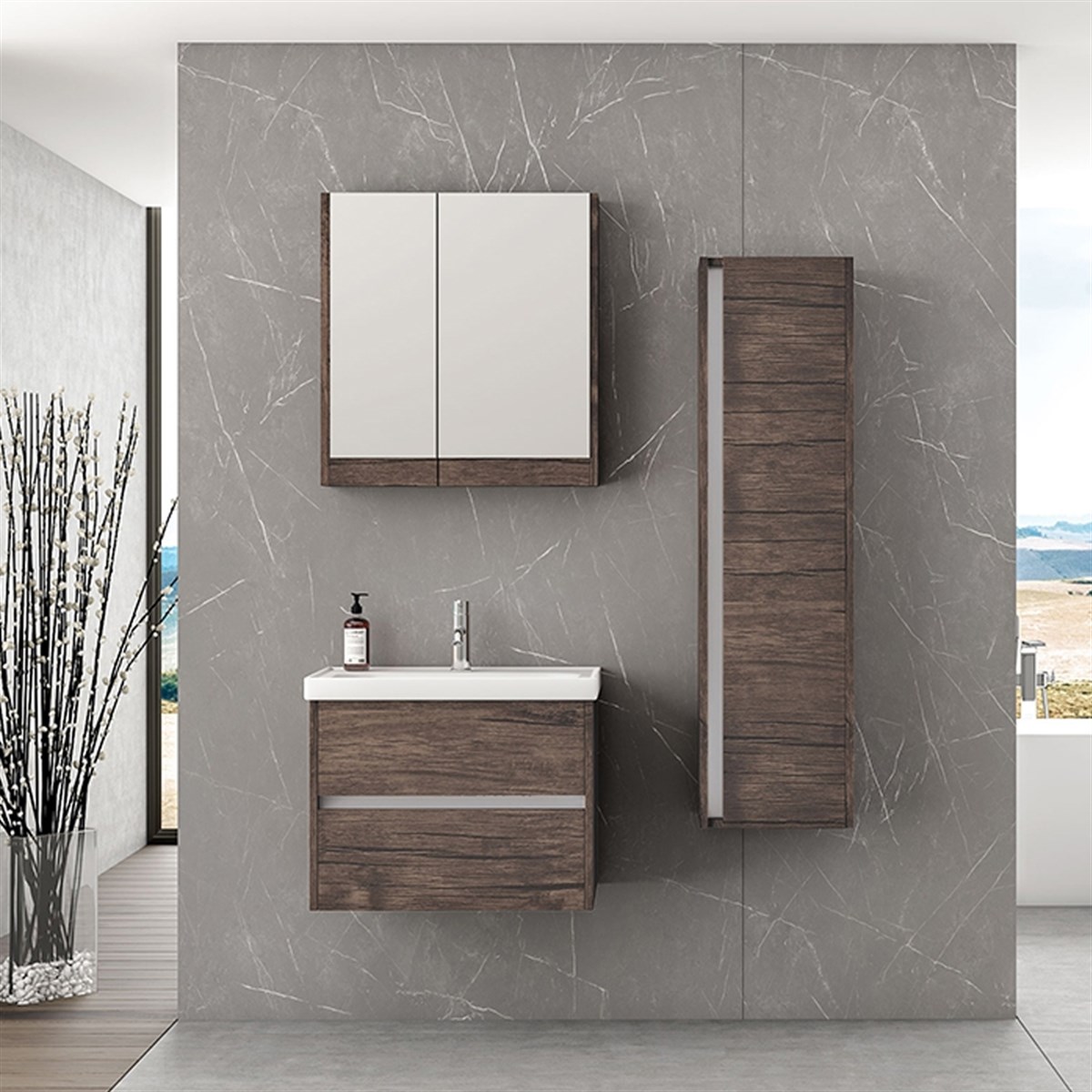 Nplus Jetta 65 cm Banyo Dolabı Antik Dark