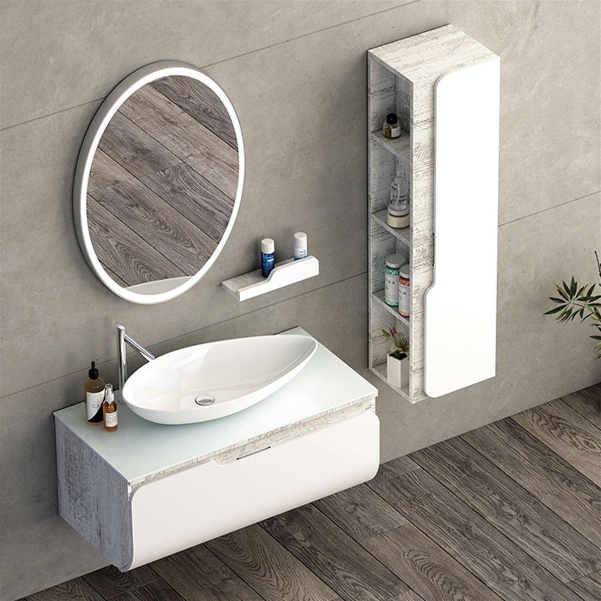 Nplus Kuga 100 cm Banyo Dolabı Antik Beyaz/Beyaz