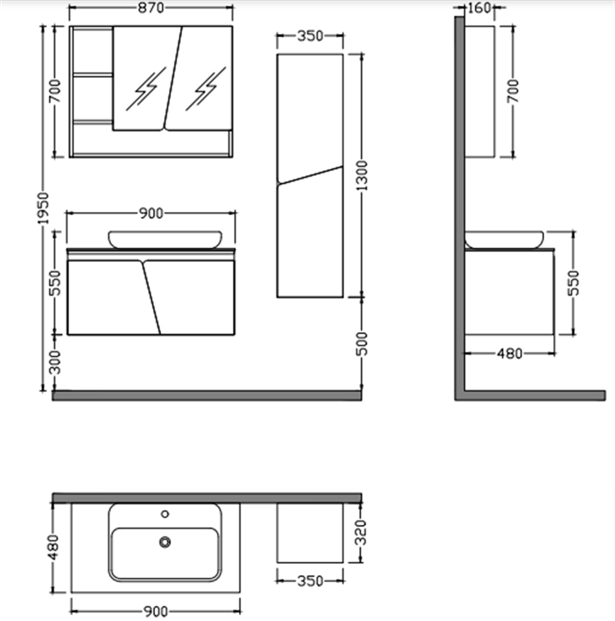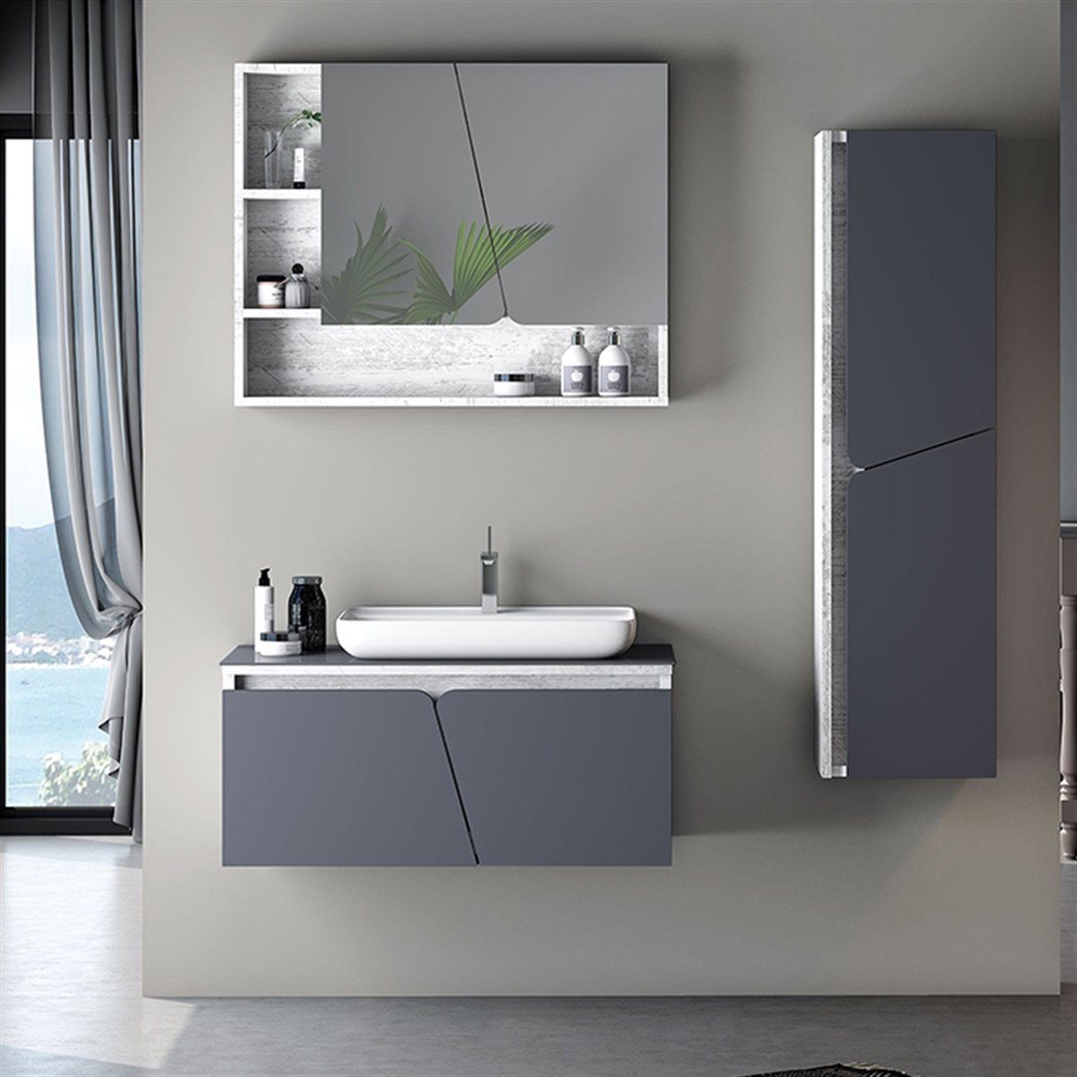 Nplus Levante 90 cm Banyo Dolabı Antik Beyaz/Mat Antrasit