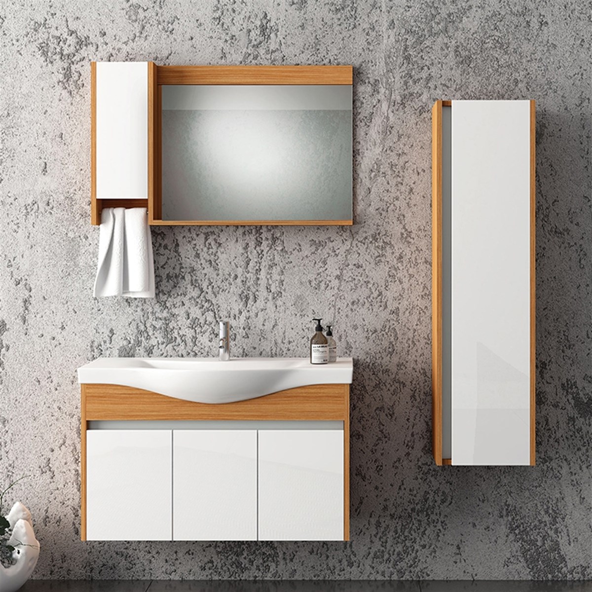 Nplus Logan 100 cm Banyo Dolabı Beyaz/M.Teak