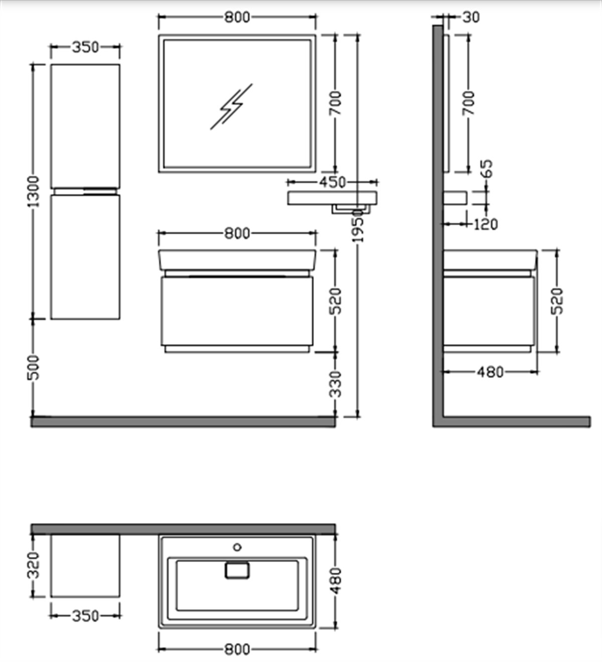 Nplus Mondeo 80 cm Banyo Dolabı Dorado/Mat Antrasit