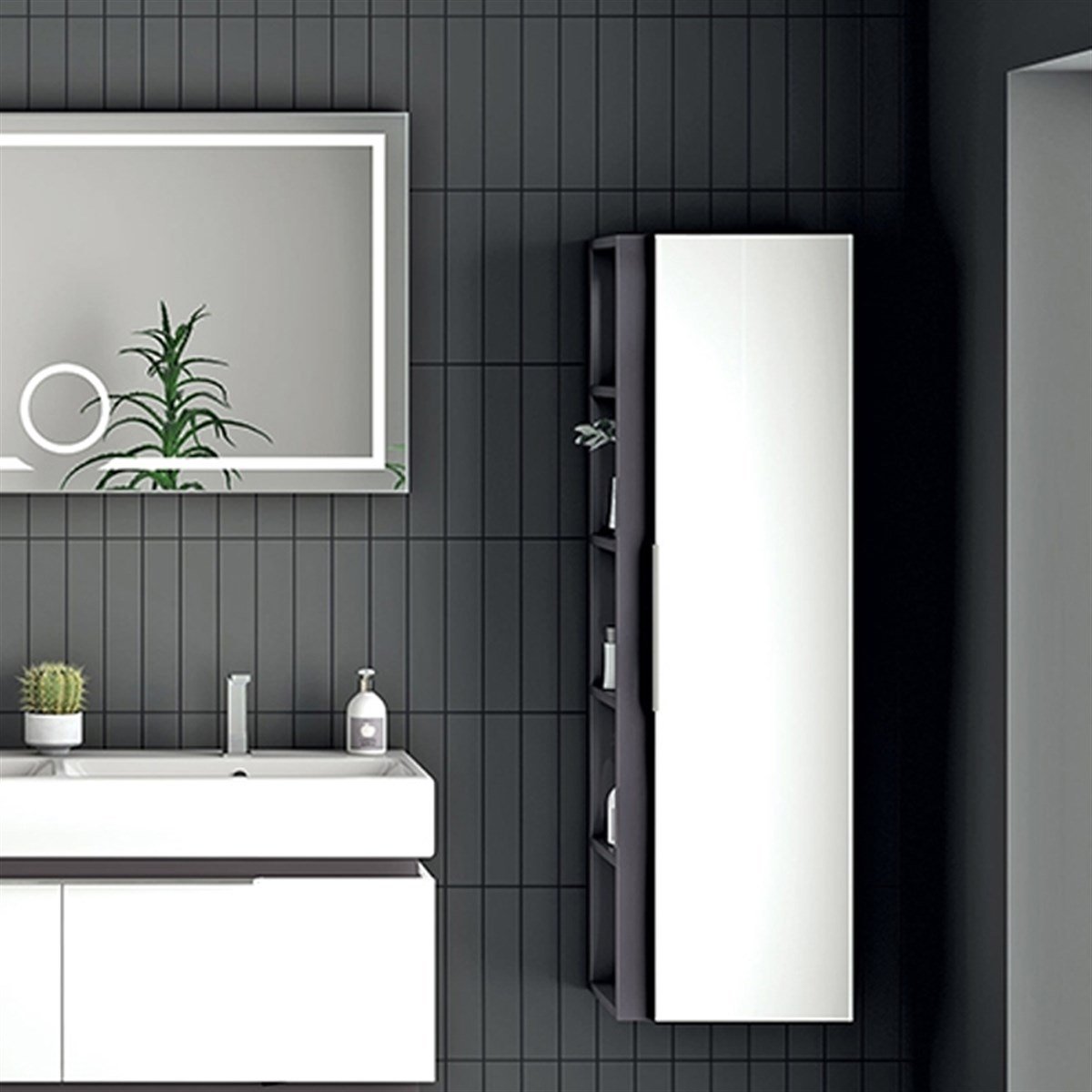 Nplus Omega 35 cm Boy Dolabı Beyaz/Mat Antrasit