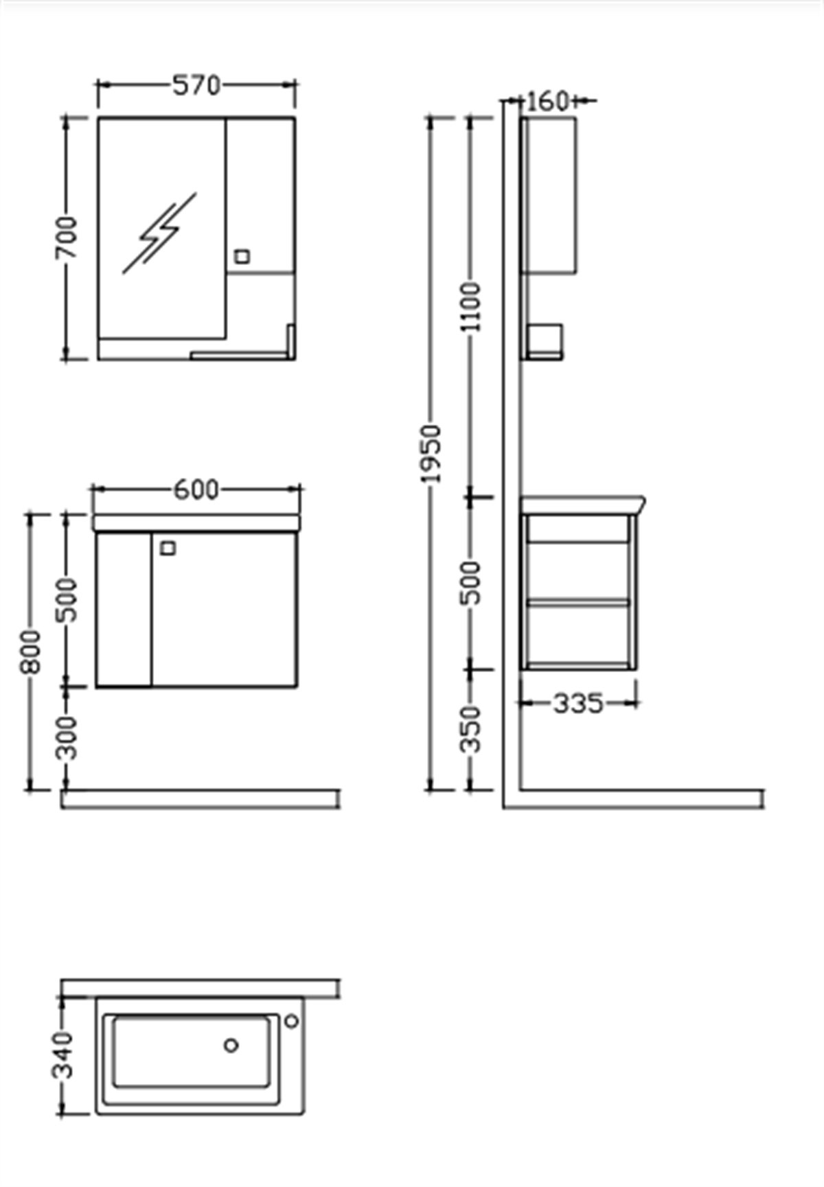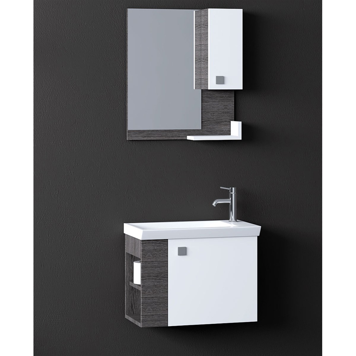 Nplus Slim Fit Mito 60 cm Banyo Dolabı Beyaz/Antrasit Meşe