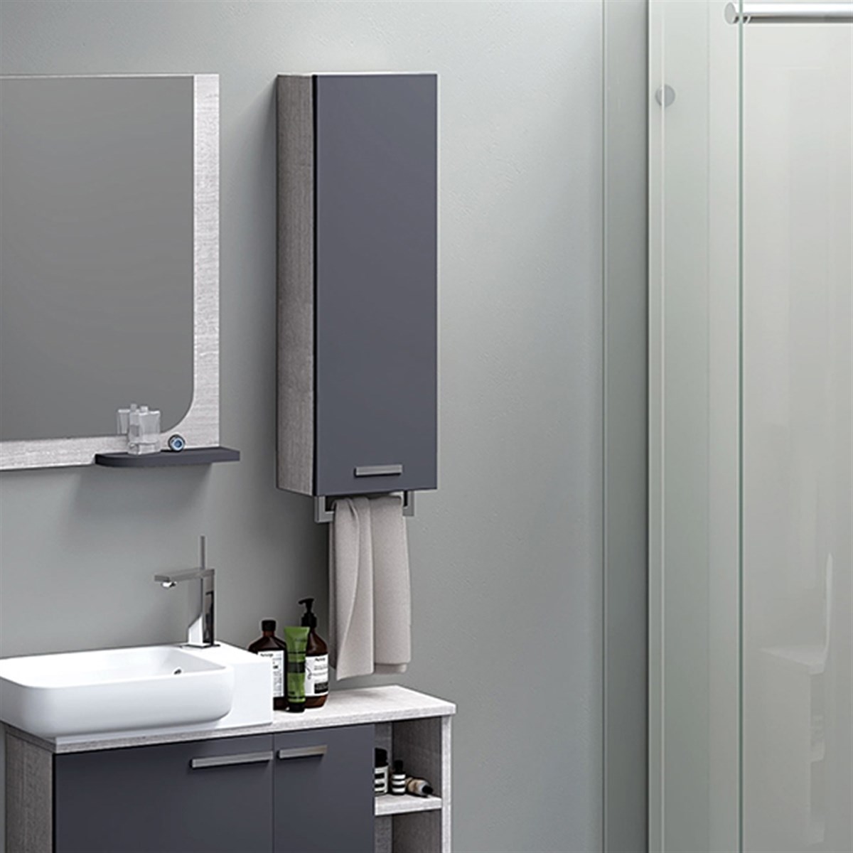 Nplus Slim Fit Polo 25 cm Yarım Boy Dolabı Mat Antrasit/Lizbon