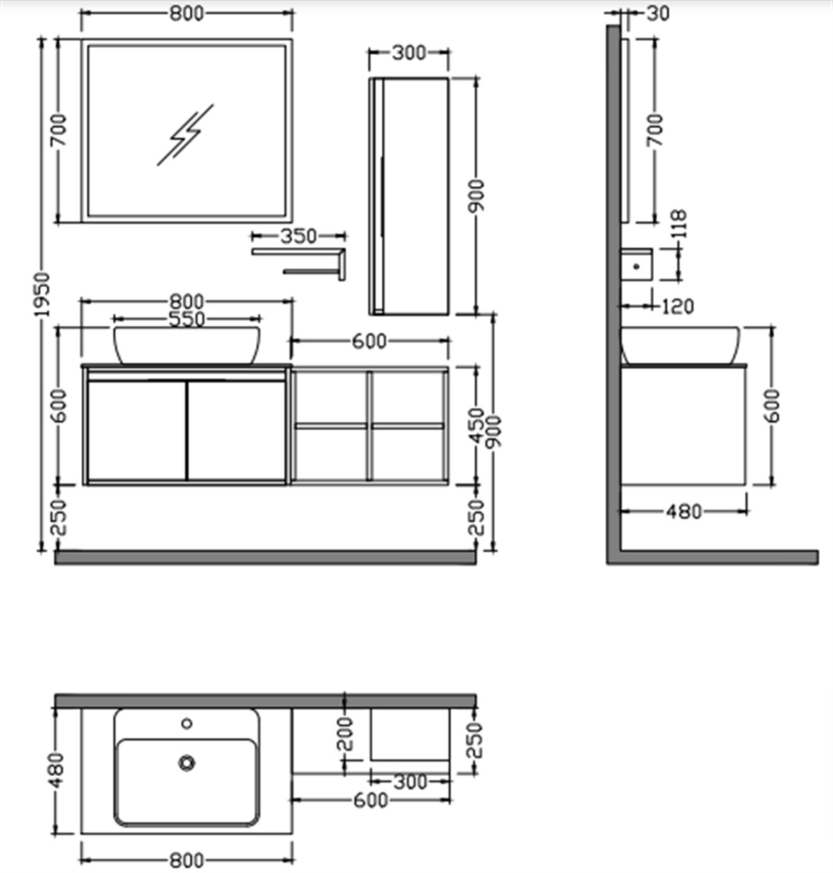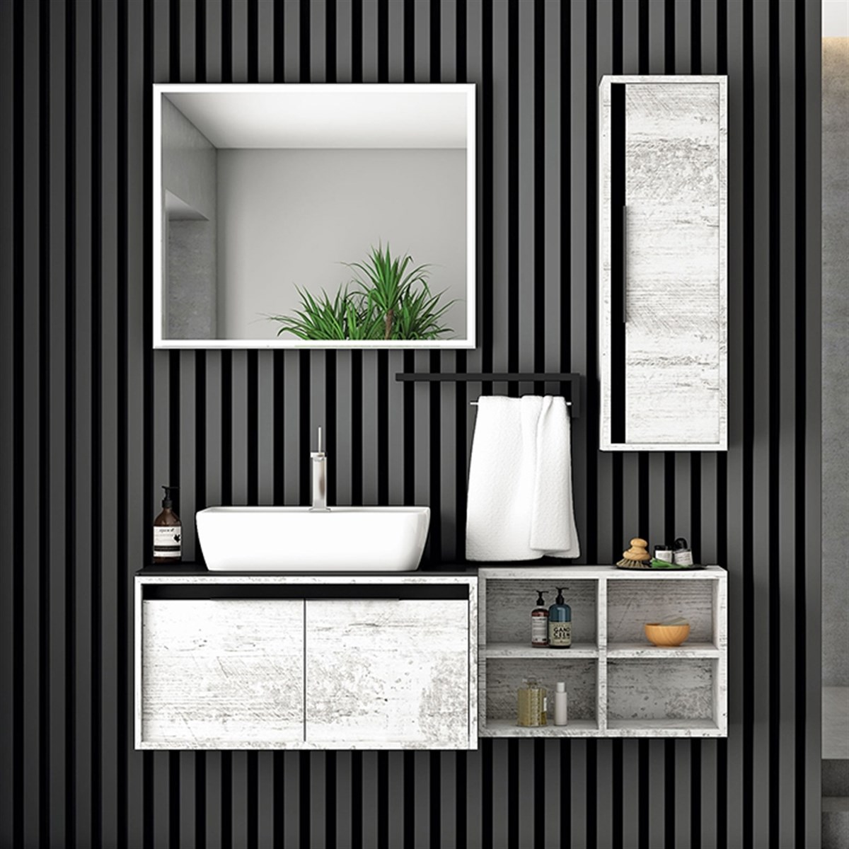 Nplus Sorento 80 cm Banyo Dolabı Antik Beyaz/Siyah
