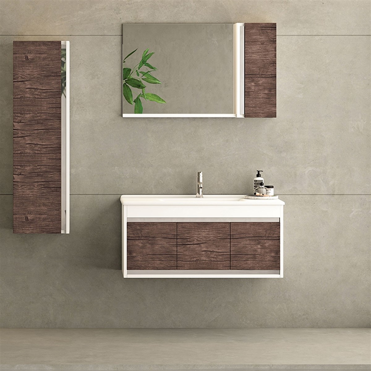 Nplus Tigra 100 cm Banyo Dolabı Beyaz/Antik Dark