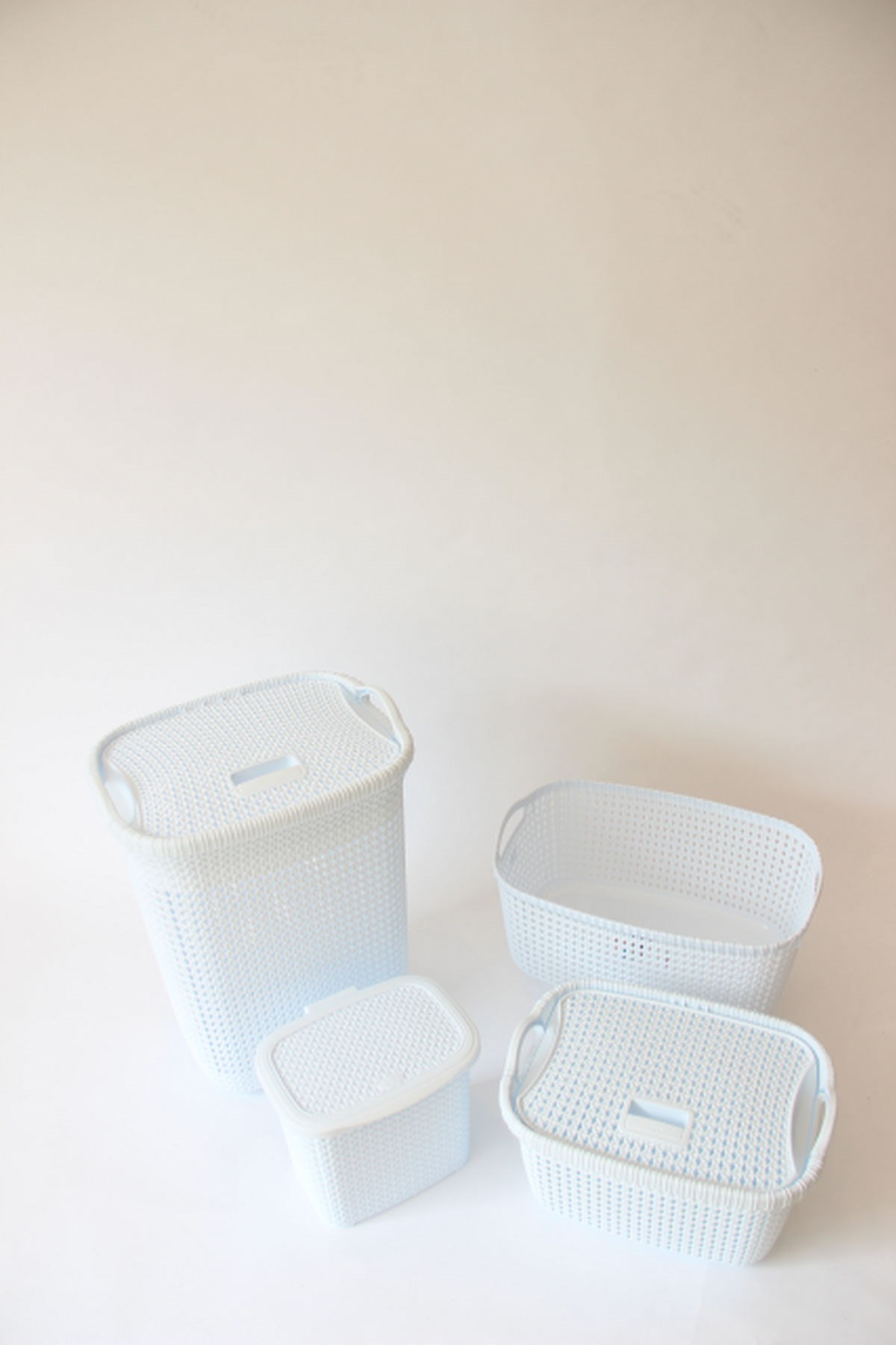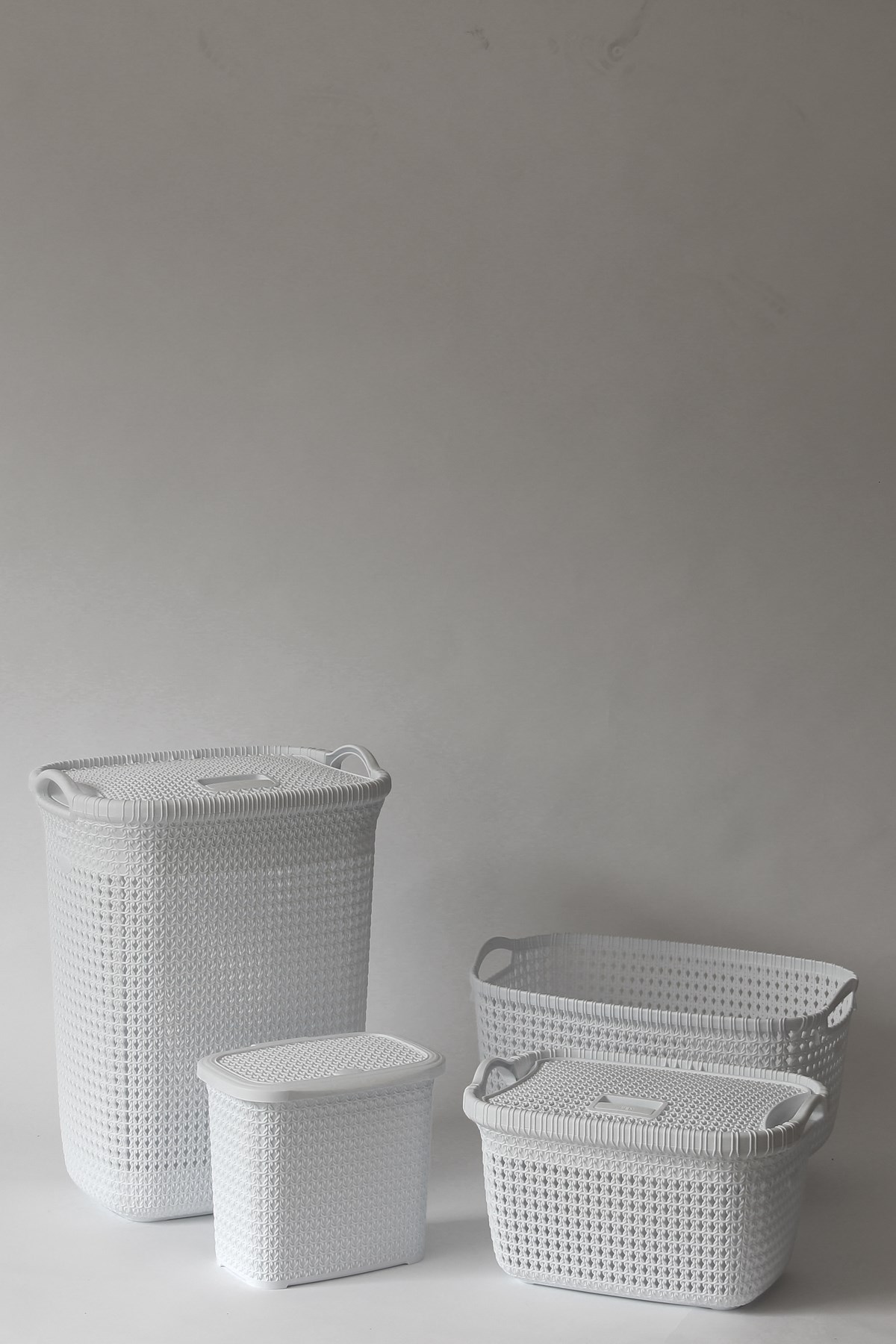 Plastik Örgü Desenli Plastik Deterjan Kutusu 10 Lt Ürün Ölçüleri : 30 X26 X 15.Kapaklı Çamaşır Sepeti 22 Lt Ürün Ebatları: 43 Cm X 30 Cm X 25 Cm .