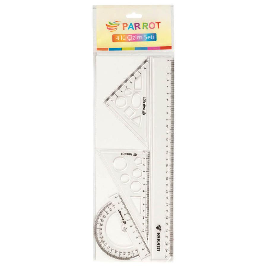 30 cm cetvel, 9cm gönye, 13cm gönye ve 10cm iletki setidir.