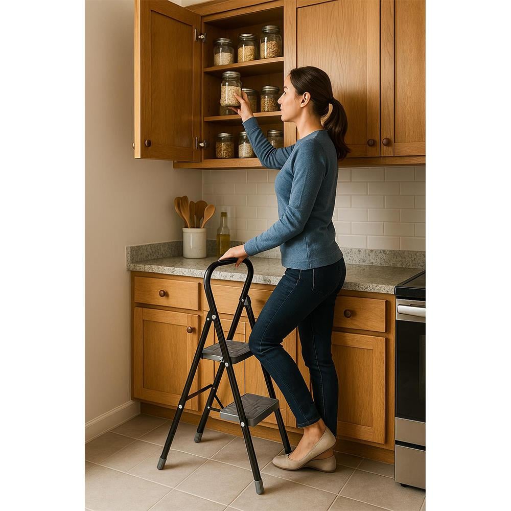 Kompakt ve Taşınabilir: 2 basamaktan oluşan yapısı ile düşük yükseklikler için ideal, taşınması ve saklanması kolaydır.