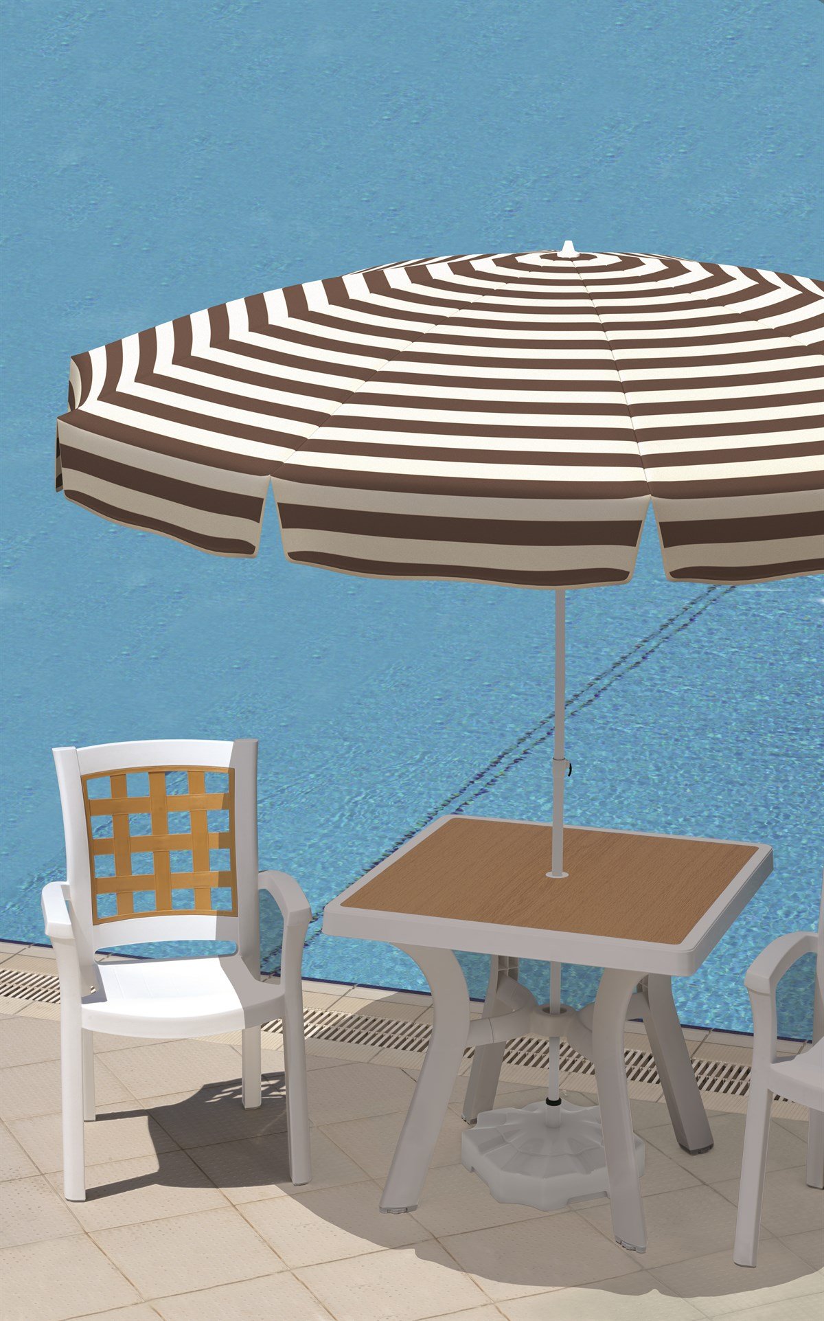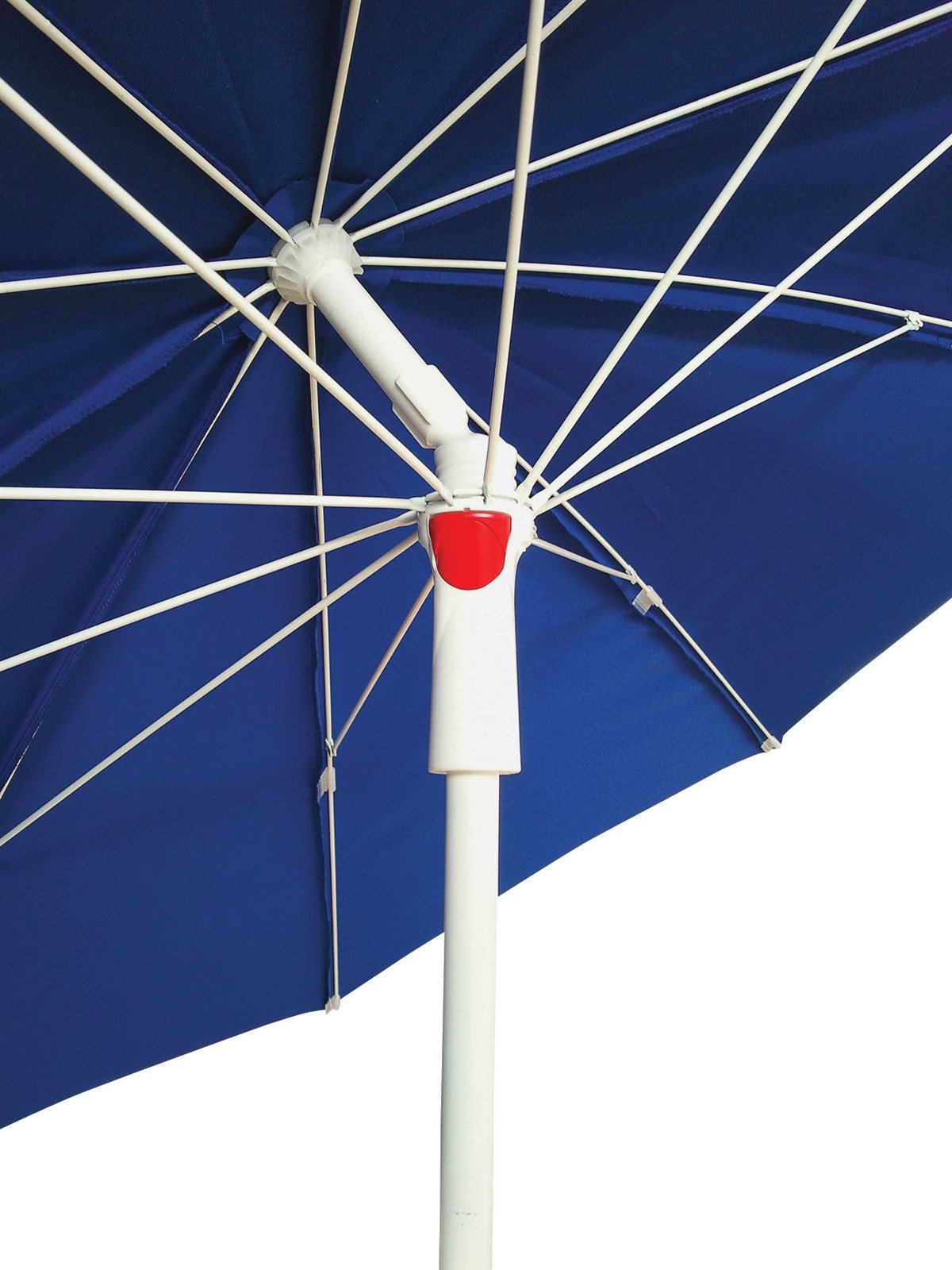 Karbon çelik tellerden mamül olan plaj ve bahçe şemsiyemiz , güneşin açısına doğru eğim verebilmeniz için tepeden kırılabilen 360 derece dönebilen mafsal başlığa sahiptir. Zengin renk çeşitleri ve farklı sabitleyici aksesuar seçenekleri ile bahçe ve havuz kenarında , güneşten korunmak için idealdir.