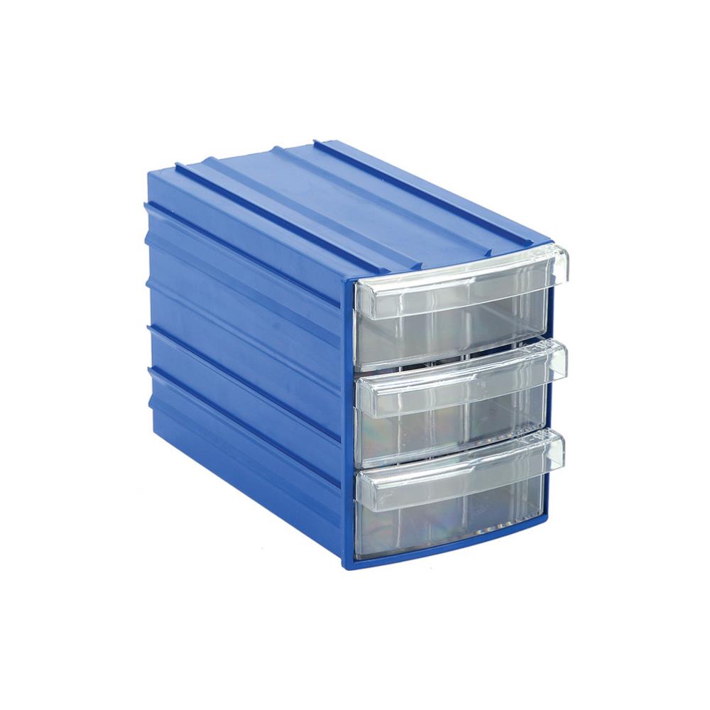 Sembol Plastik Oval Üç Çekmeceli Kutu Y 93 95x155x111mm Mavi-Şeffaf
