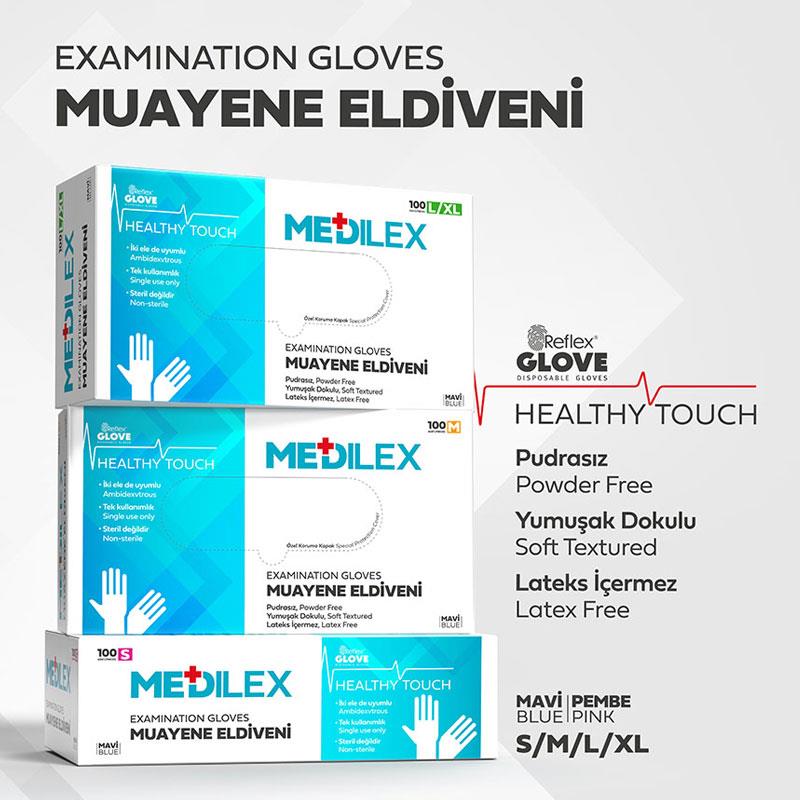 Reflex Medilex Pudrasız Muayene Eldiveni Mavi S Beden 100'lü Paket