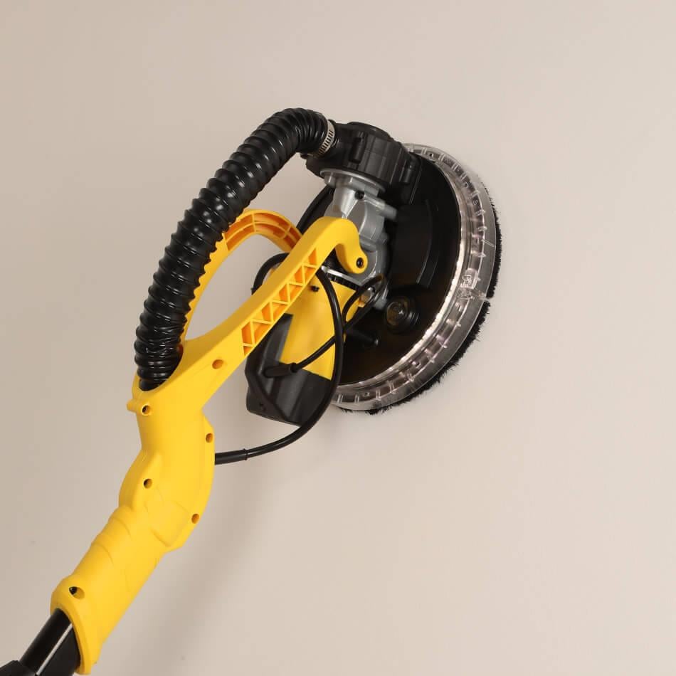 Eklemli oynar zımpara başlığı sayesinde kullanıcı iskele kurmaksızın tavan zımparalayabilir.