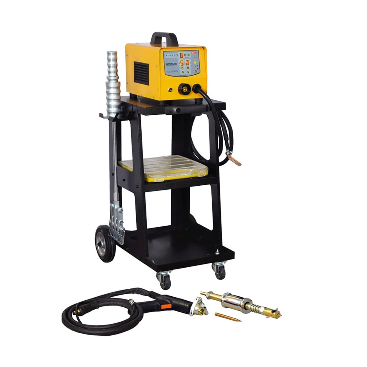 12 kVA gücünde elektronik akım ve zaman kontrollü profesyonel kaporta çektirme makinası setidir. Çektirme yapılacak kaporta kalınlığına göre kaportada minimum izi bırakacak şekilde dijital ayar yapılabilir.