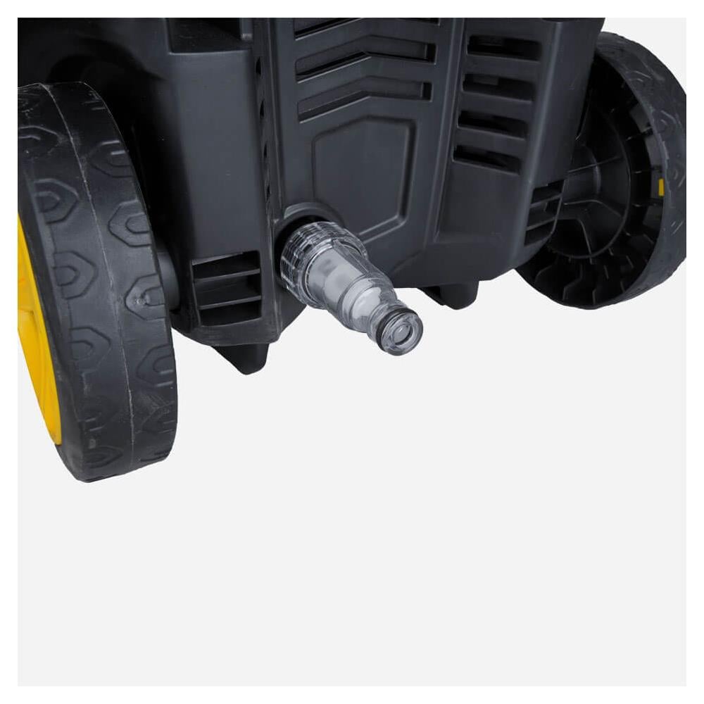 Kompakt gövde yapısı ve tekerlekli tasarımı sayesinde kolay taşınır. 5 metrelik hortumu ve uzun kablosu ile geniş çalışma alanı sunar. Şebeke suyuna bağlanabileceği gibi, kova