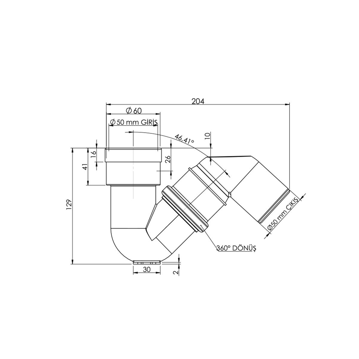 Ürün gövdesi PP (Polipropilen), sızdırmazlık elemanları ise TPE (Termoplastik Elastomer) malzemeden üretilmiştir. Bu kombinasyon, hem dayanıklılığı hem de esnekliği bir arada sunar. Ayrıca ürün, TS EN 1451-S16 standardına uygun olarak üretilmiştir. Bu standart, atık su tesisatlarında kullanılan plastik boru ve bağlantı elemanlarının güvenilirliğini belirler. Yani ürün, hem yerli hem de uluslararası projelerde kullanılmaya uygundur.