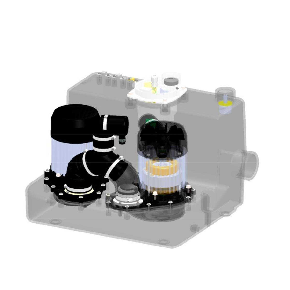 Geniş kanallı çark* ile donatılmış olan Sanicom 2 V02, kontrol panosu ile birlikte temin edilir. Opsiyonel olarak alarm modülü temin edilebilir.