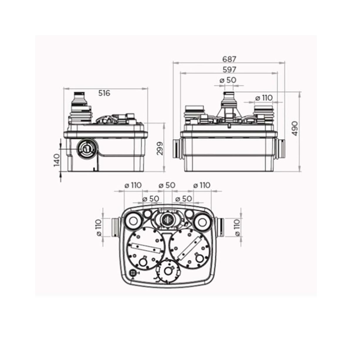 1500 W'lık 2 adet ProX K2 parçalayıcı bıçaklı* motor ile donatılmış olan Sanicubic 2 Classique, birden fazla klozet, banyo, mutfak veya çamaşırhanenizden gelen foseptik suları tahliye edebilen bir tahliye istasyonudur. Cihaz IP68 yüksek sızdırmazlık koruma sınıfındadır. Harici kablolu alarm modülü ürünle birlikte temin edilir.