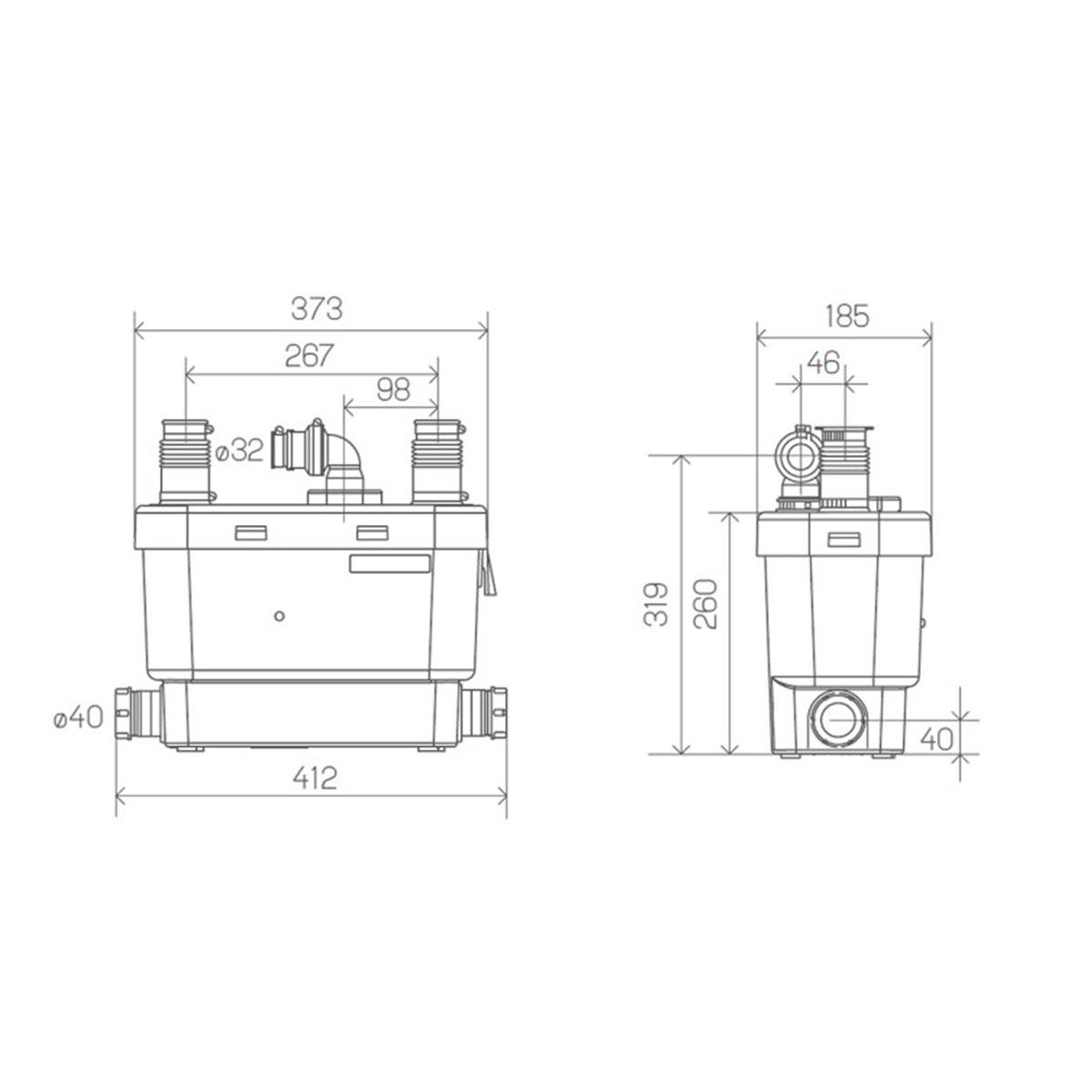 Sanispeed pompa 4 girişi sayesinde mutfağınızın tüm pis sularını (evye, bulaşık makinesi, çamaşır makinesi vb...) 32 mm çapında ince PVC/PPRC borular aracılığıyla ana gidere tahliye edebilmektedir.