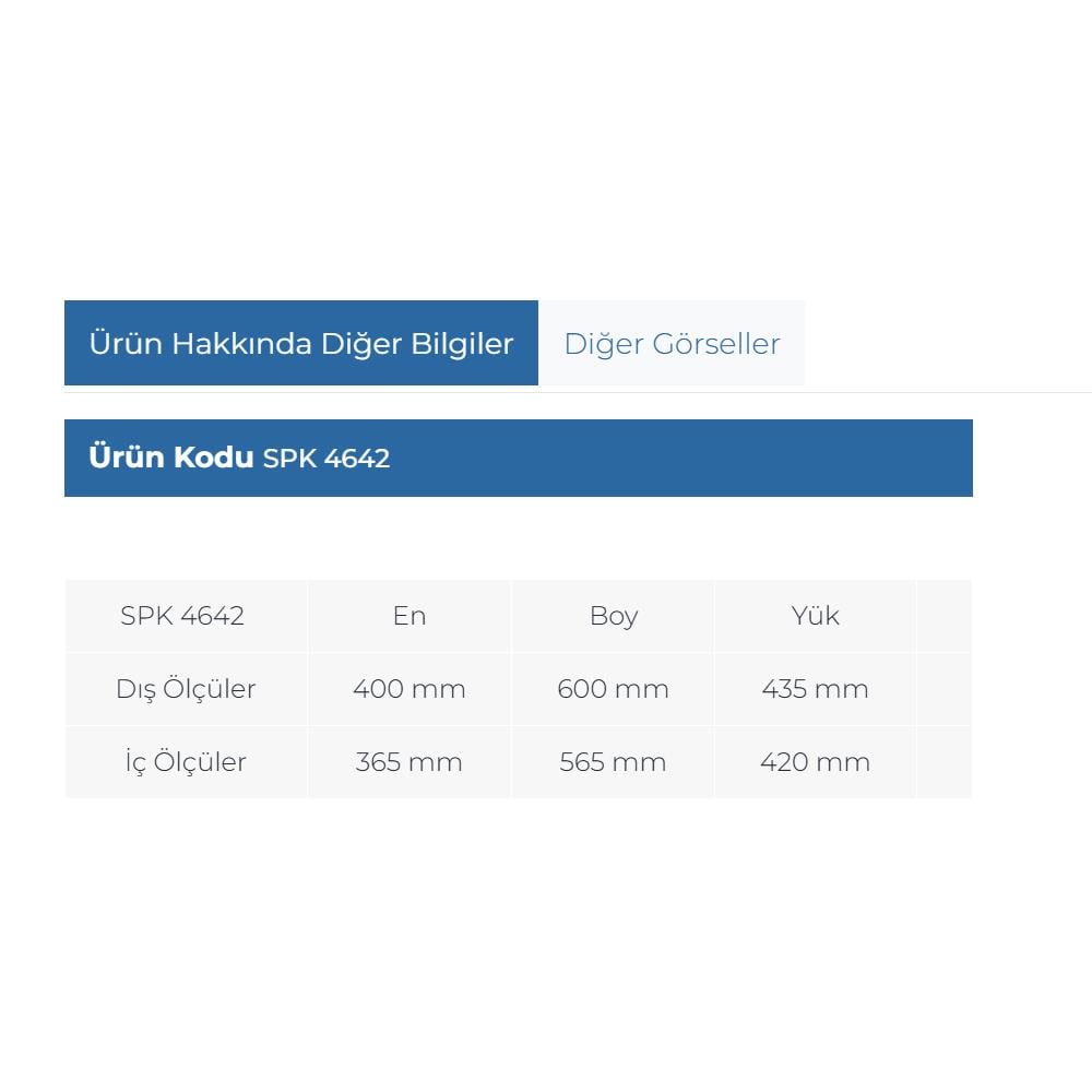 çözümdür. 400x600 mm taban ölçüsü ve 435 mm yüksekliği ile büyük ve hacimli ürünlerin taşınması, depolanması ve düzenlenmesi için ideal bir tercihtir. Bu model, geniş hacmi ile