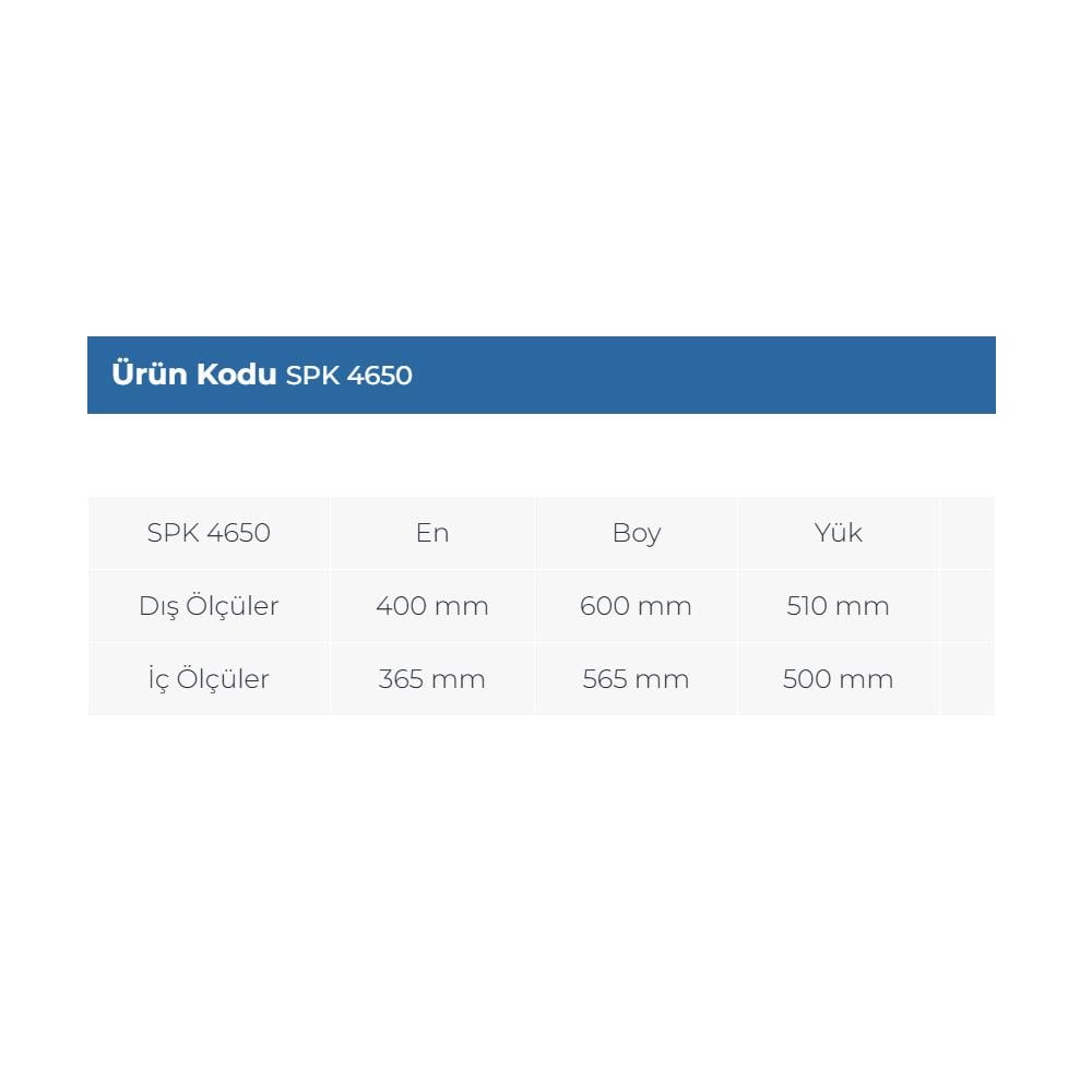 Sembol Plastik SPK 4650 Kapalı Sanayi Tipi Kasa, yüksek dayanıklılığı ve geniş iç hacmi ile sanayi, lojistik ve depo alanlarında güvenli taşıma ve düzenleme için mükemmel bir