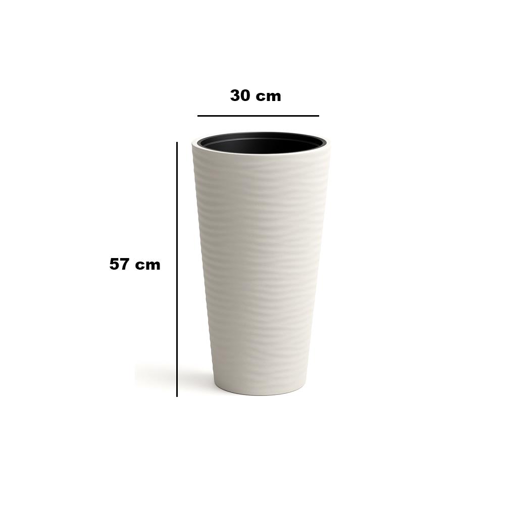 Serinova Kumsal Vazo Saksı, zarif vazo formu ve 5,5 litrelik kapasitesi ile hem dekoratif hem de işlevsel bir çözüm sunar. İç ve dış mekan kullanımına uygun olan bu saksı, beyaz