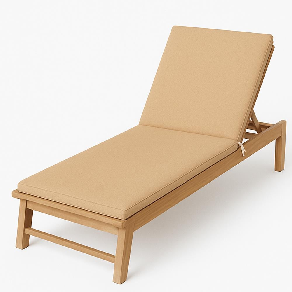 Bej renkteki bu şezlong minderi, su tutmaz dış mekan kumaşı ve kullanışlı tasarımıyla hem şıklık hem de konfor sunar. Katlanabilir yapısı sayesinde taşıması kolaydır ve yer