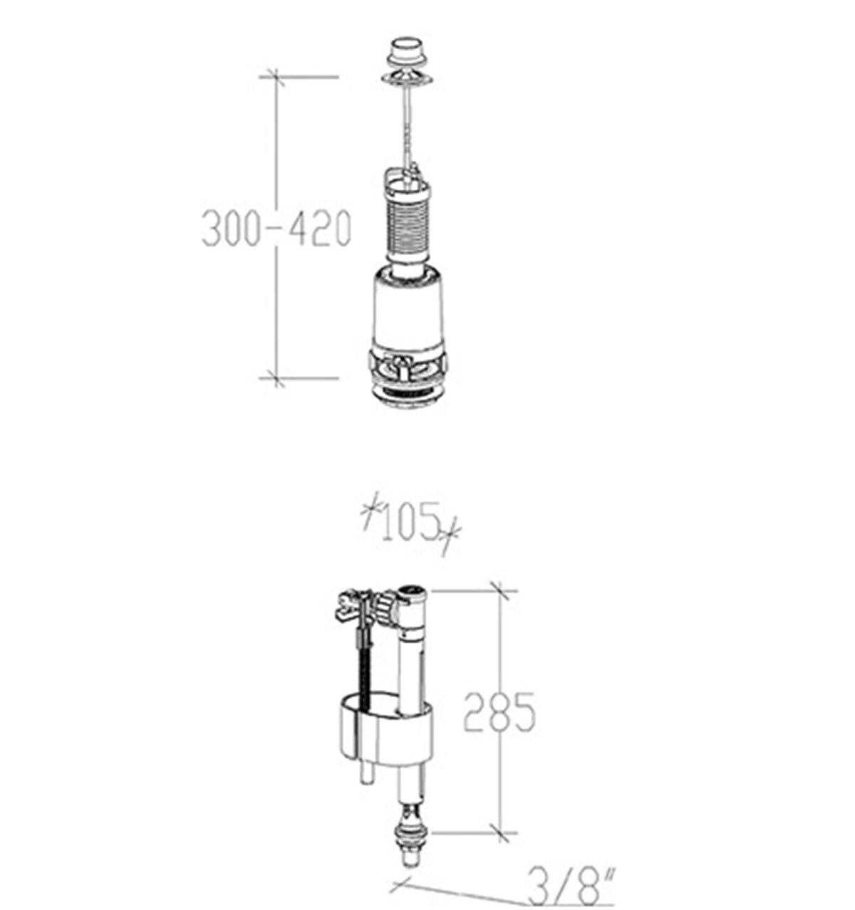 - Delik çapı 10 ile 42 mm arasındaki tüm seramik rezervuarlara uyumlu basma butonu.
