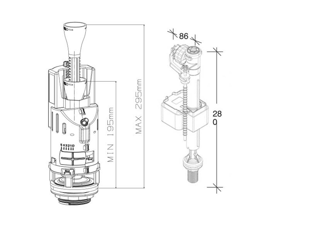 . Delik çapı 18-50 mm arasındaki seramik rezervuarlar ile uyumlu buton