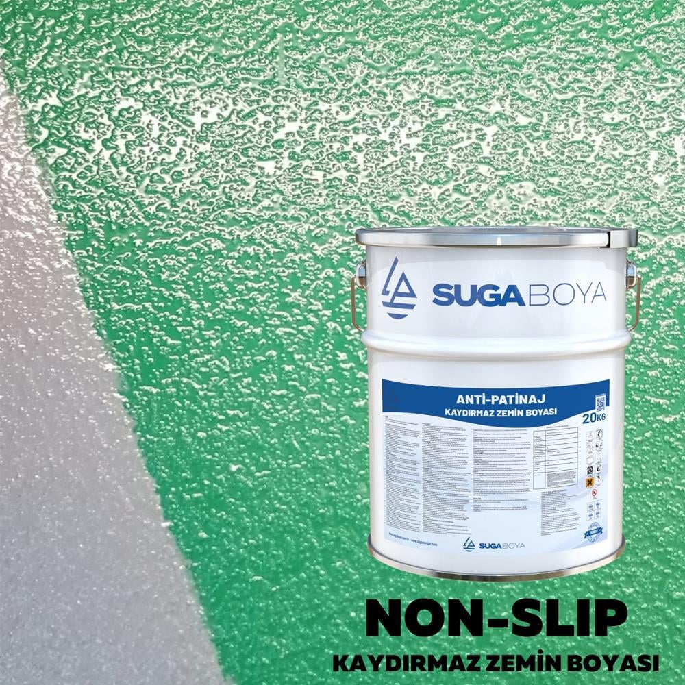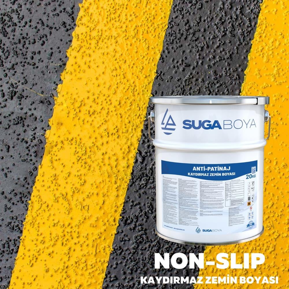 Suga Anti-Patinaj, zeminlerde kaymaz yüzey oluşturmak amacıyla formüle edilmiş özel bir zemin boyasıdır. Özellikle eğimli alanlar, ıslak zeminler ve güvenli yürüme yüzeyi