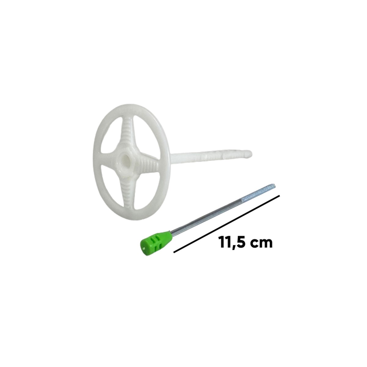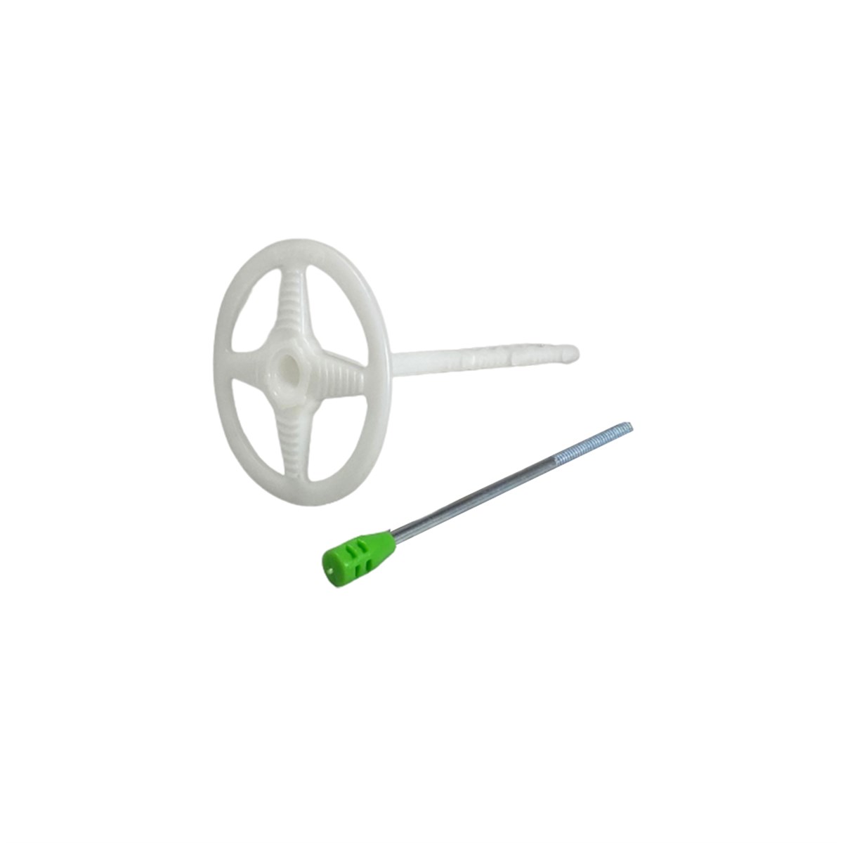 Geniş başlıklı mekanik tırnaklı çelik çivili taşyünü dübeli. Taşyünü uygulamalarında hem geniş başlıklı hemde çelik çivili olması istenir. Normal diğer dübeller kafa çapı 60 cm'dir. Ancak taşyünü levha uygulamalarında dübel kafa çapının en az 80 cm olması beklenir. Bizim ürünlerimiz kafa çapı yaklaşık 82 cm'dir. Plastik ham maddeden yapılmış dübeller, tırnak kısmını mekanik tırnaklı hala getirilerek. Dübelin ilgili duvar elemanına montaj sonrası geri çıkışı önlenir.