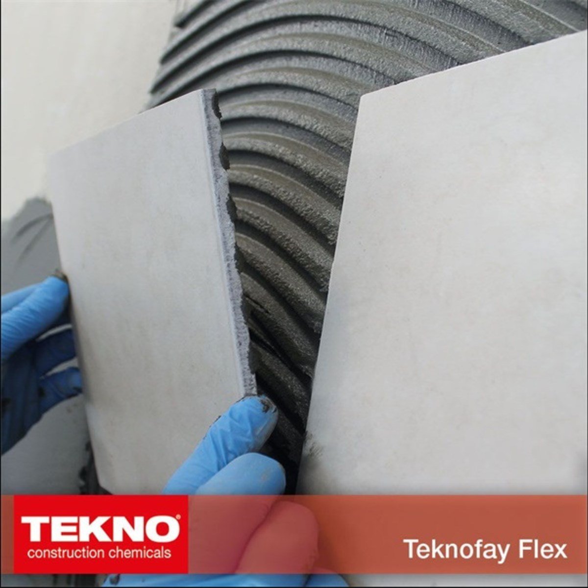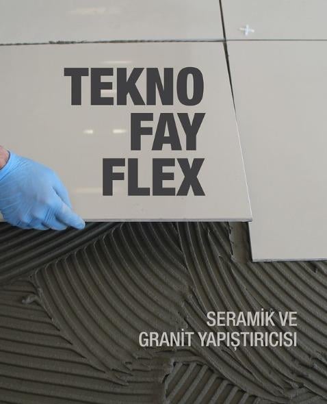 Seramik arkasındaki tozlu yüzey nemlendirilerek silinmelidir. 25 kg TEKNOFAY SÜPERFLEX, sıvı bileşen üzerine yavaşça boşaltılmalı ve homojen bir karışım elde edilinceye kadar karıştırılmalıdır. Karışım düşük devirli mikser ile yapılmalıdır. Sıvı bileşene su eklenmemelidir.