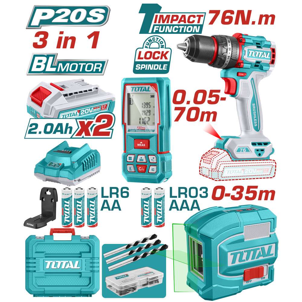 Total 3’lü set içerisinde yer alan ürünler; yüksek performanslı bir darbeli matkap seti, hassas ölçüm için kullanılan lazer metre ve projelerde doğru hizalama sağlayan lazer hizalama cihazıdır. Bu kombinasyon, evdeki tadilat işlerinden profesyonel montajlara kadar geniş bir kullanım alanı sunar. Tek pakette üç farklı ihtiyaca cevap veren bu set, zaman ve maliyet açısından büyük avantaj sağlar.