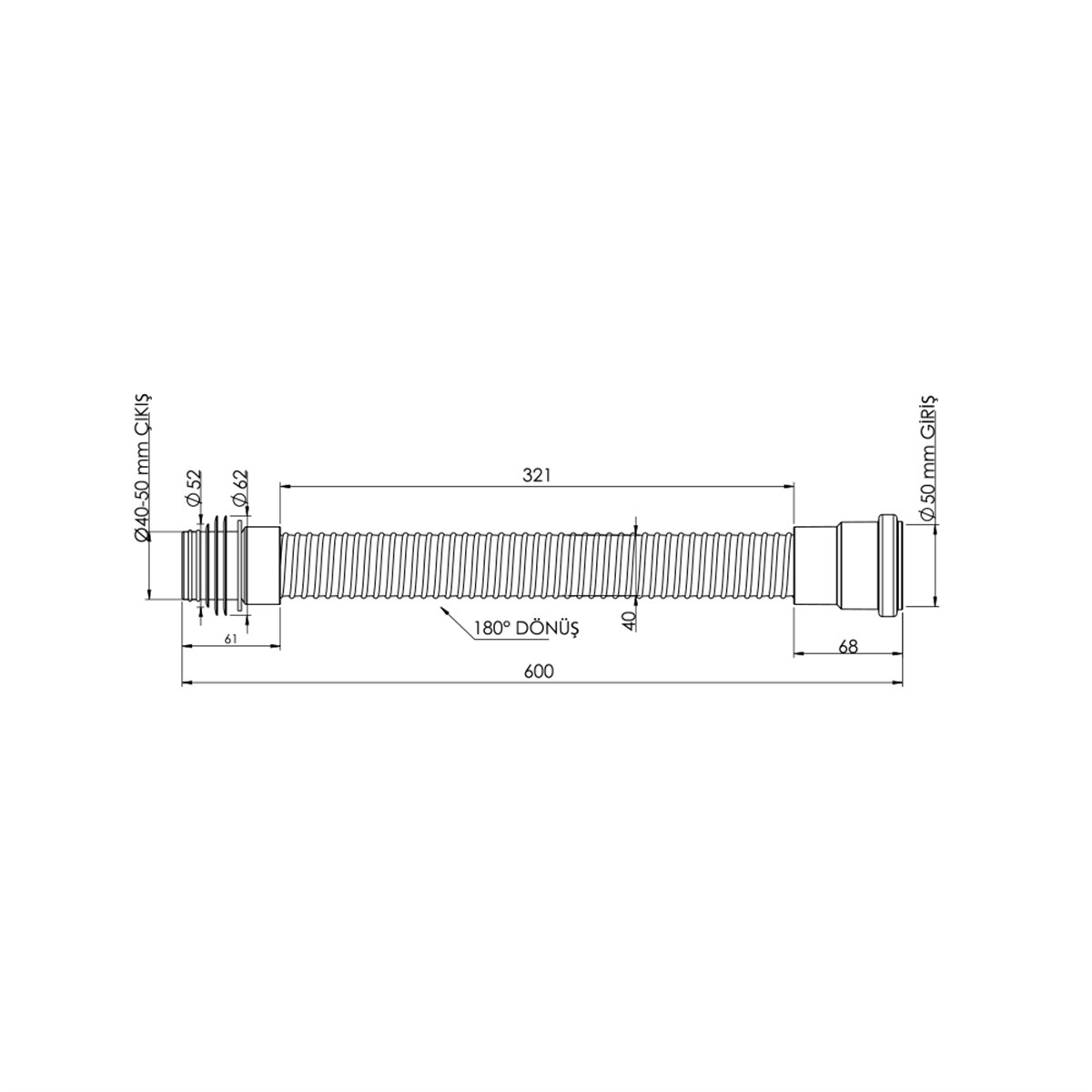 Pis su borusunun ve ek parçaların fiziki olarak dönemediği yerlerde esnek yapısıyla bağlantı yapmayı kolaylaştırır. Genelde küvet ve yer süzgecini, pis su gider tesisatına bağlamada kullanılır.