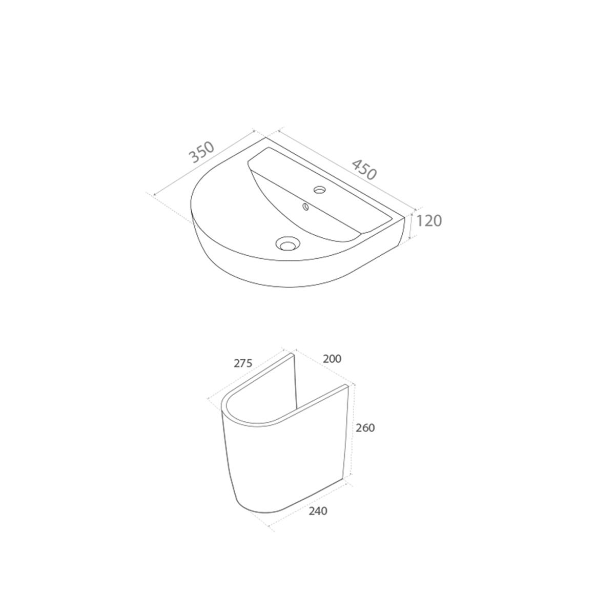 Turkuaz Bella Lavabo 35X45Cm 003100-U + Yarım Ayak 016800