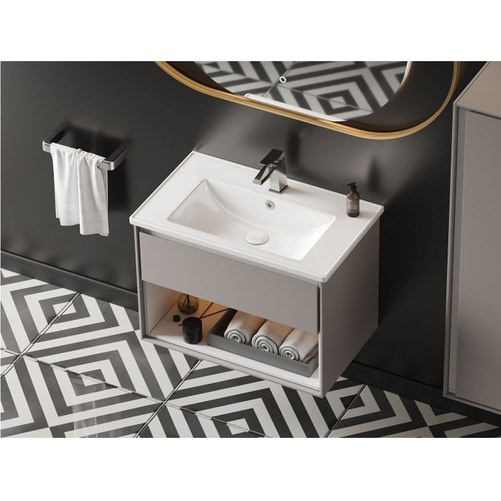 Banyo lavabosu 55x36 cm, özellikle sınırlı alana sahip mekanlar için yeterlidir. Etajerli yapısı sayesinde lavabo alanı genişletilir, temel bakım ürünleri için ek kullanım yüzeyi sunar. Küçük banyolarda lavabo alanının düzenli kalmasını sağlar. Hem kullanım hem de tasarım açısından küçük ama fonksiyonel bir çözümdür.