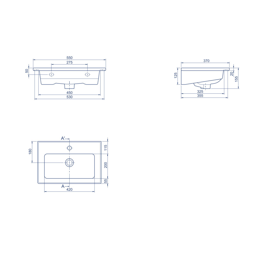 Arte Plus lavabo serisinin bu modeli, özellikle misafir tuvaletleri, dar banyo alanları veya ikincil lavabo ihtiyaçları için idealdir. Banyo lavabosu 55x36 cm ölçüsüyle minimum alanda maksimum fonksiyon sunar. Etajerli tasarımı, sabunluk veya benzeri ürünler için ekstra yüzey sunarak kullanıcı konforunu artırır.