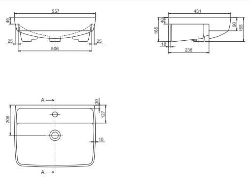 Turkuaz Cerastyle Duru Yarım Tezgah Üstü Lavabo 56x43cm 060800-u