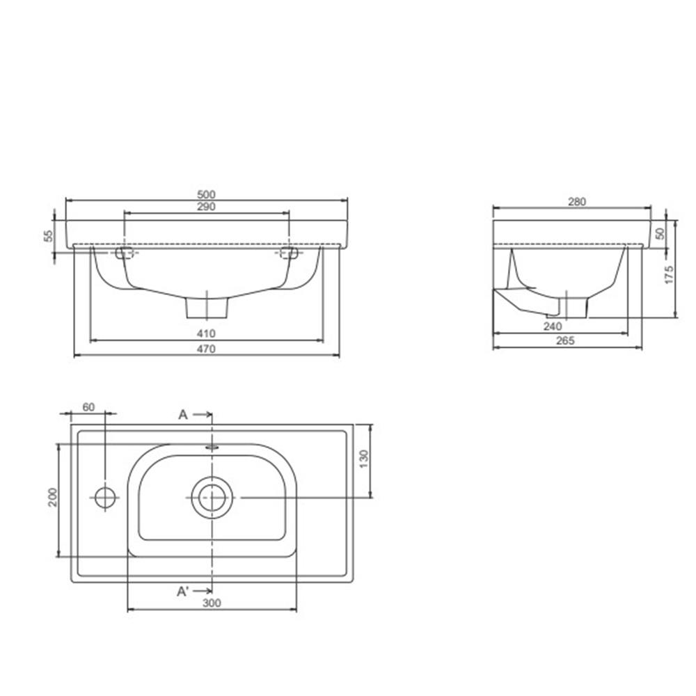 Turkuaz Cerastyle Frame Etajerli Lavabo 50X28Cm 001700-U (Sağdan Batarya Delikli)