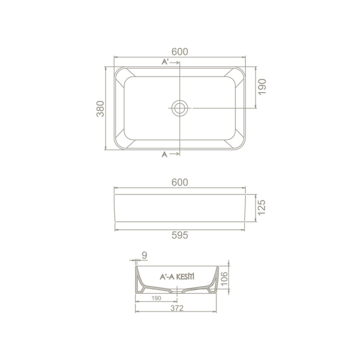 Turkuaz Cerastyle Hera Tezgah Üstü Lavabo Deliksiz 60x38cm OC017T61W003Y01102
