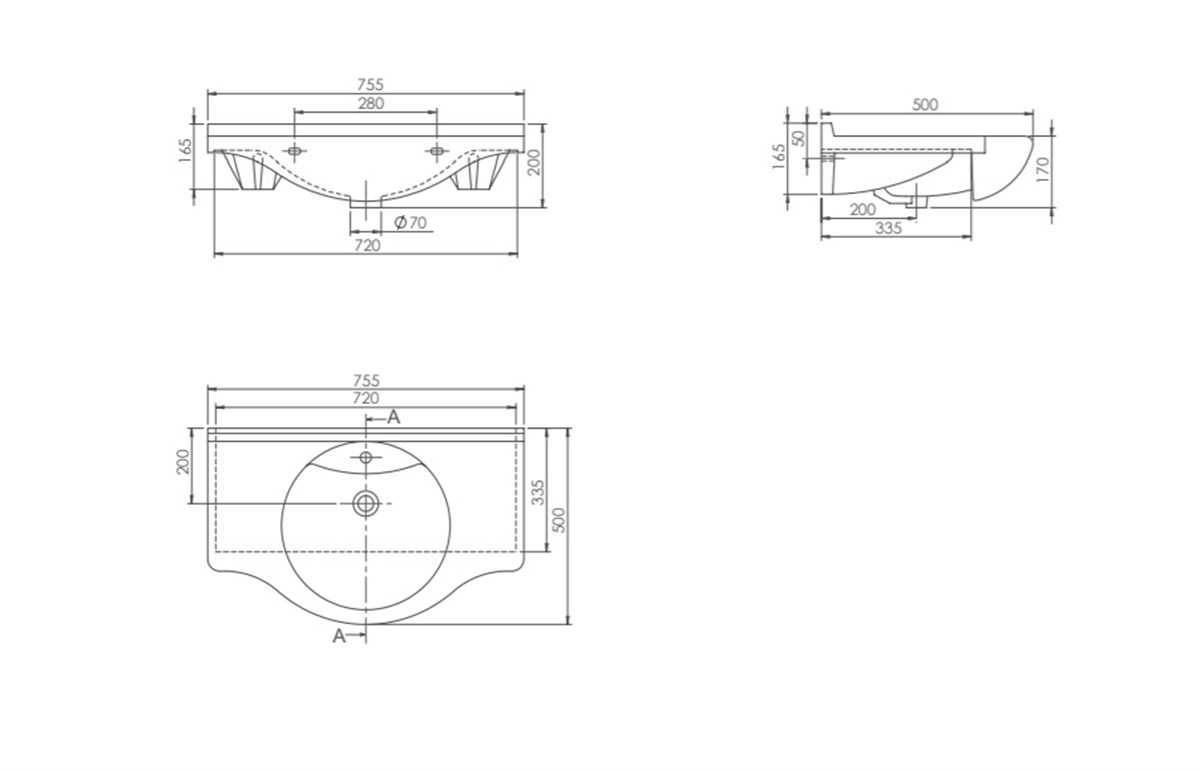 Turkuaz Cerastyle Nil Etajerli Lavabo 75X50 Cm 066400-U