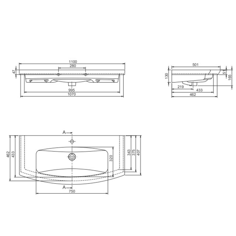 Turkuaz Cerastyle Plus Etajerli Lavabo 110X51Cm 090300-U