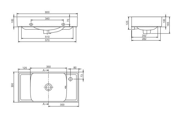 Turkuaz Cerastyle Sharp Etajerli Lavabo 60x30cm 044400-u (Sağdan Batarya Delikli)