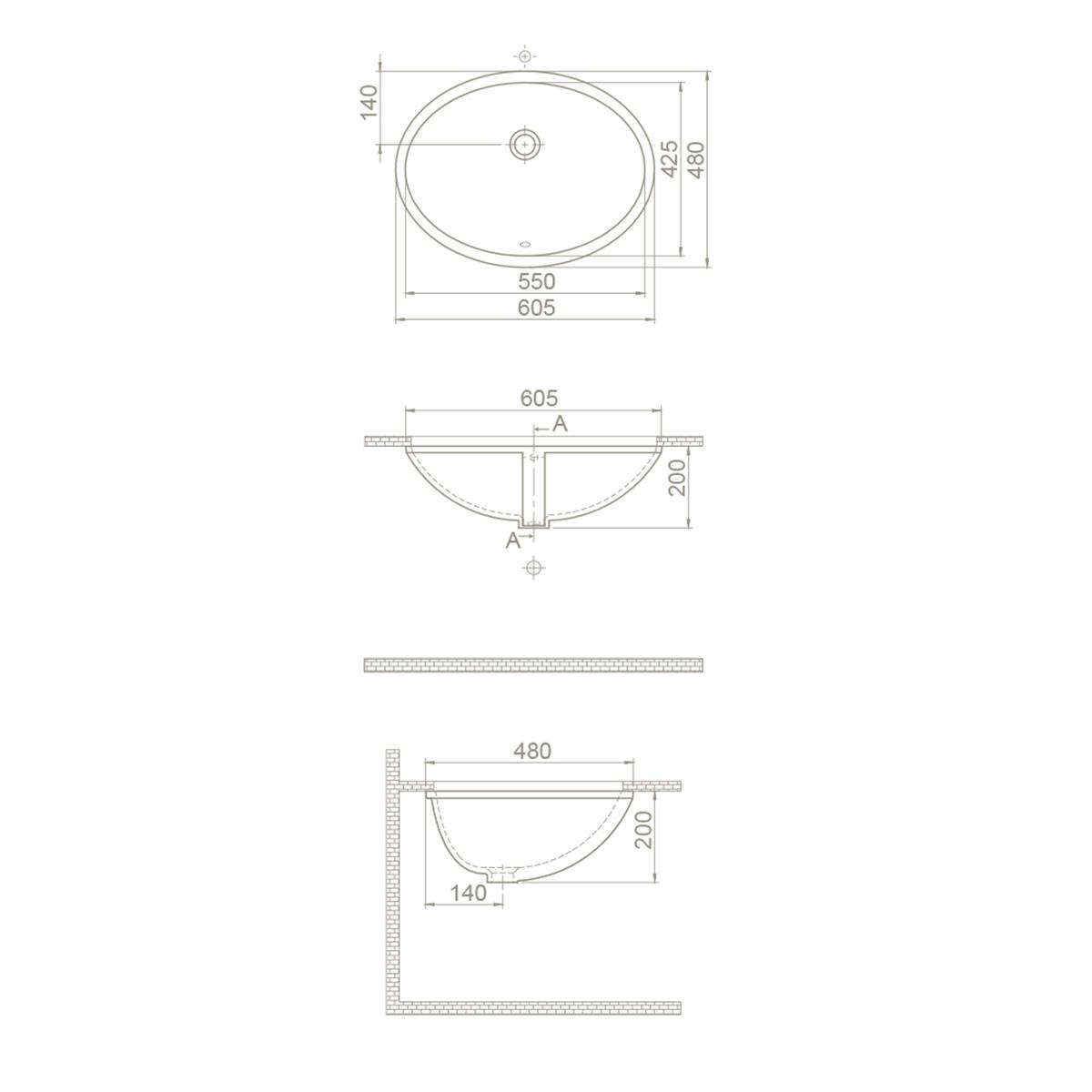Turkuaz Cerastyle Tezgah Altı Lavabo 55X43Cm 070100