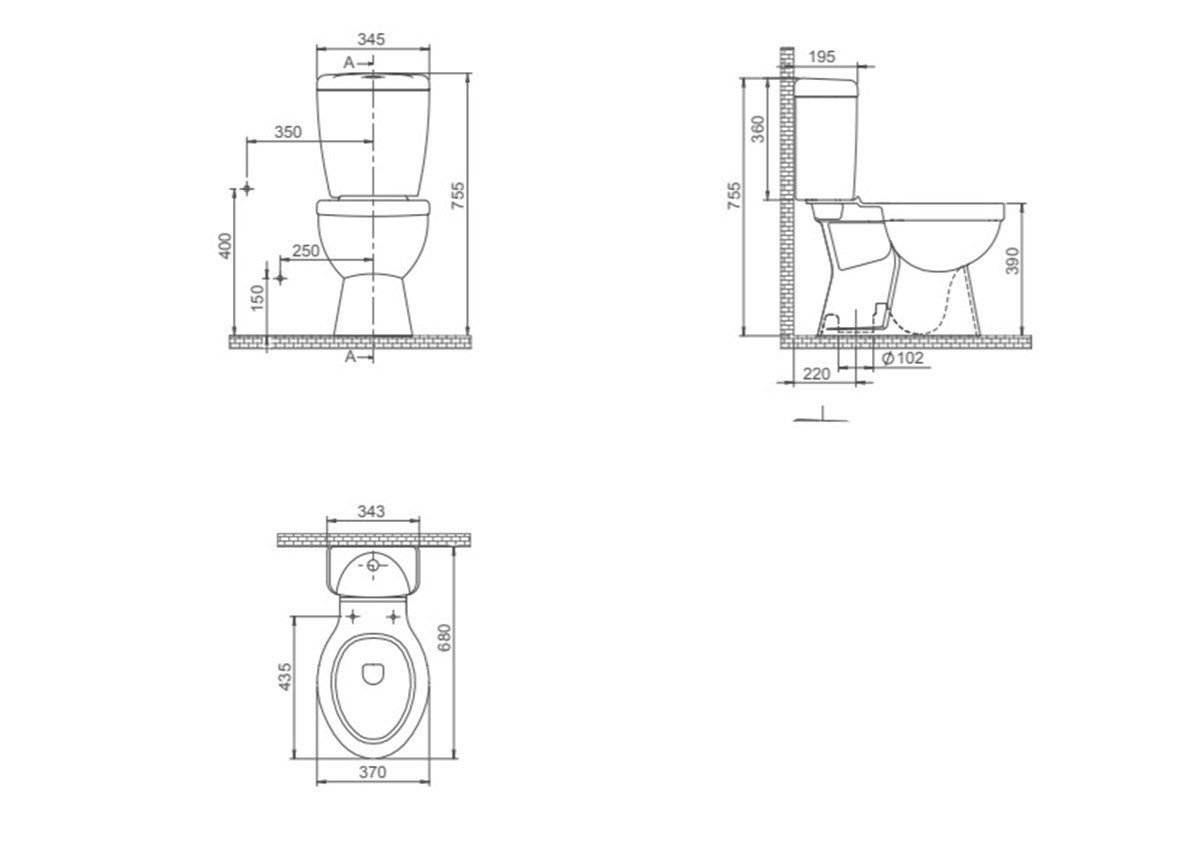 Turkuaz Ova Klozet+Rezervuar Alttan Çıkışlı Set010004