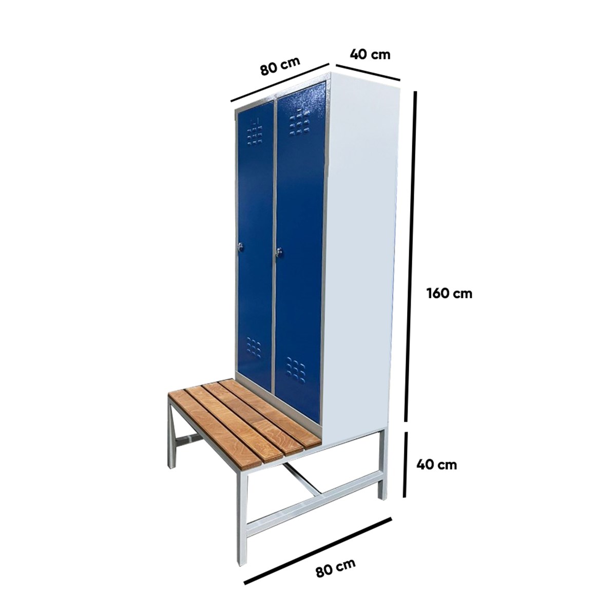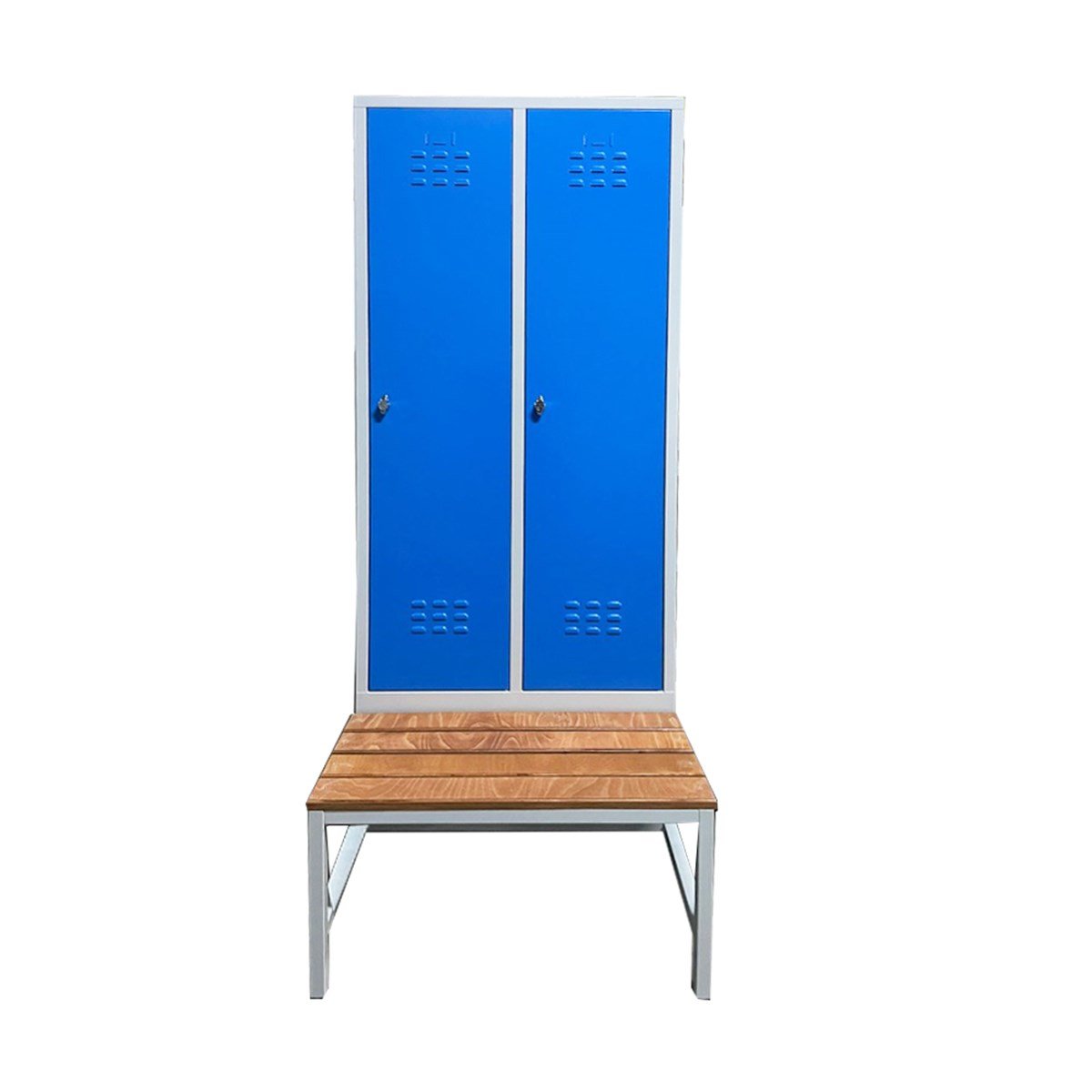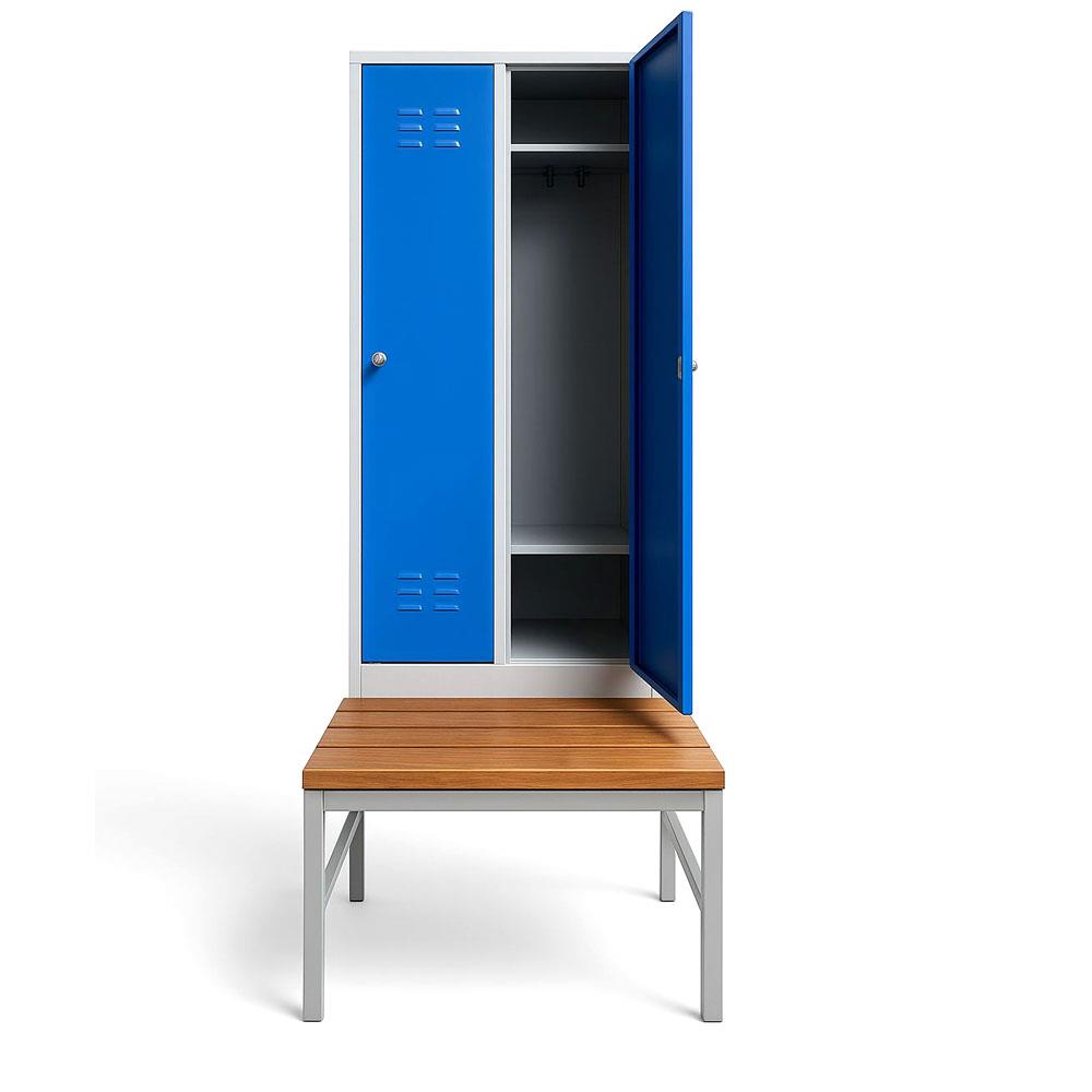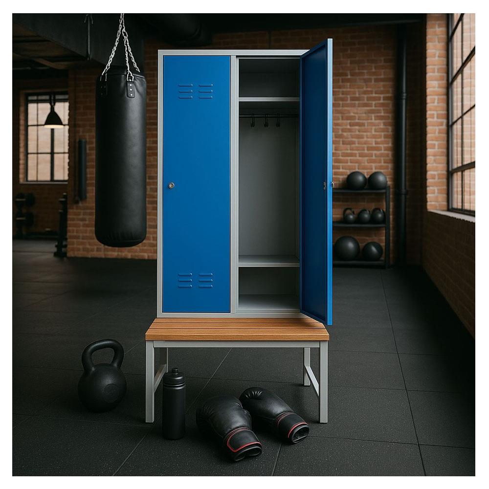 Usta Çelik Giyinme Dolabı Metal Oturma Banklı 2 Kapılı U-S02-Bnk Gri Gövde-Mavi Kapak