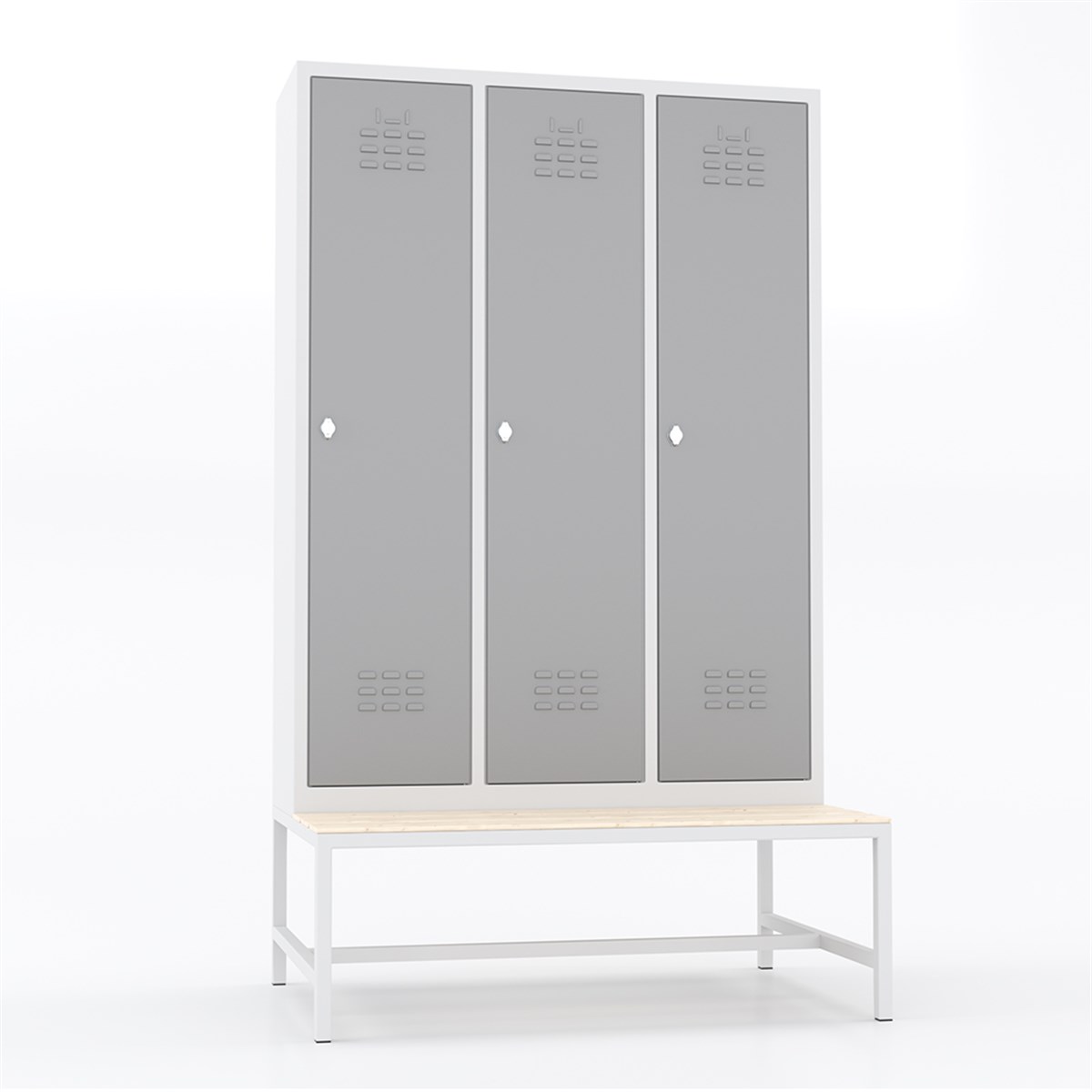 Usta Çelik Giyinme Dolabı Metal Oturma Banklı 3 Kapılı U-S03-Bnk