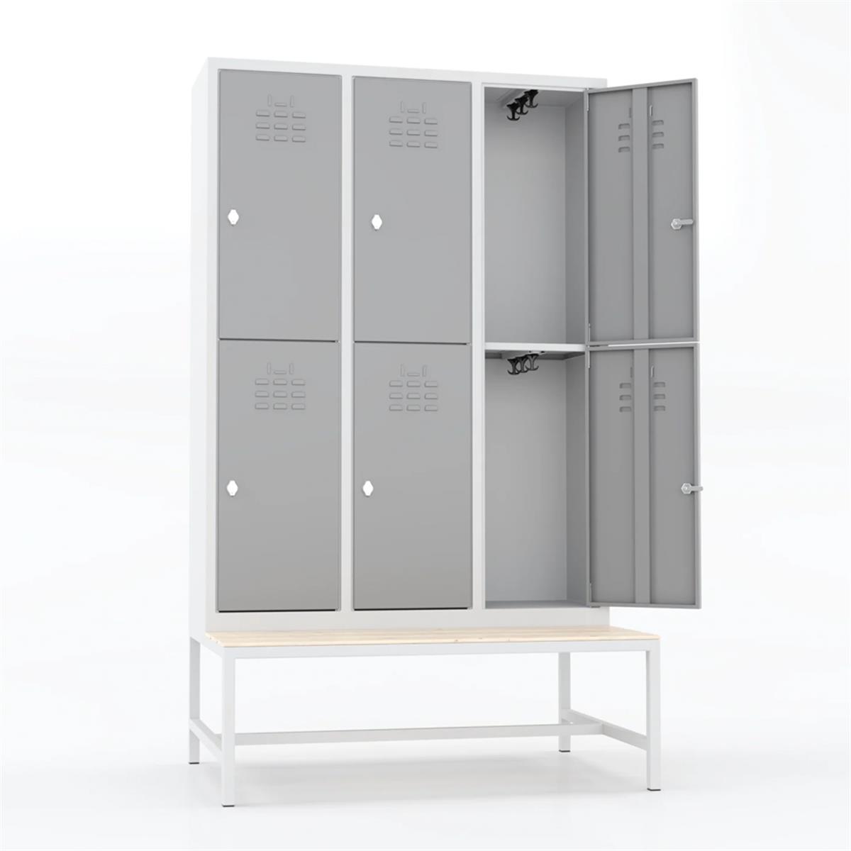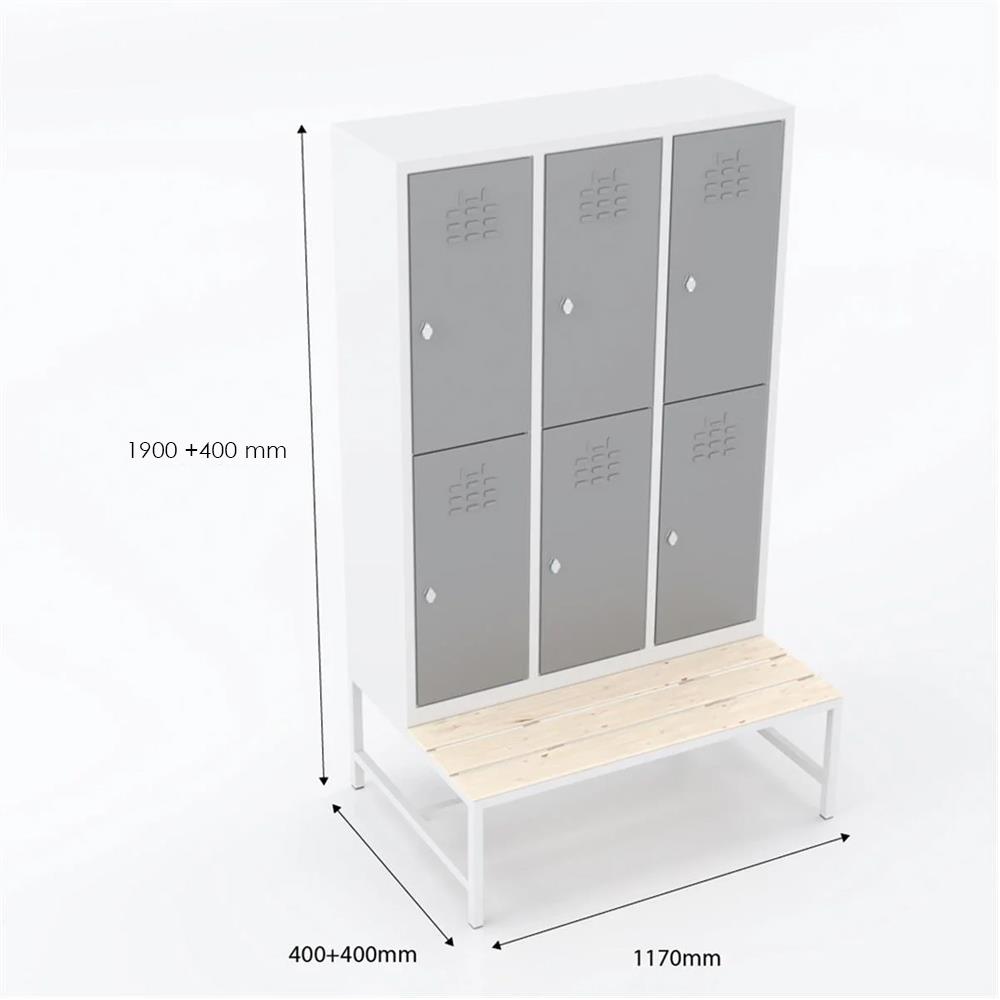 Usta Çelik Giyinme Dolabı Metal Oturma Banklı 6 Kapılı U-S06-Bnk